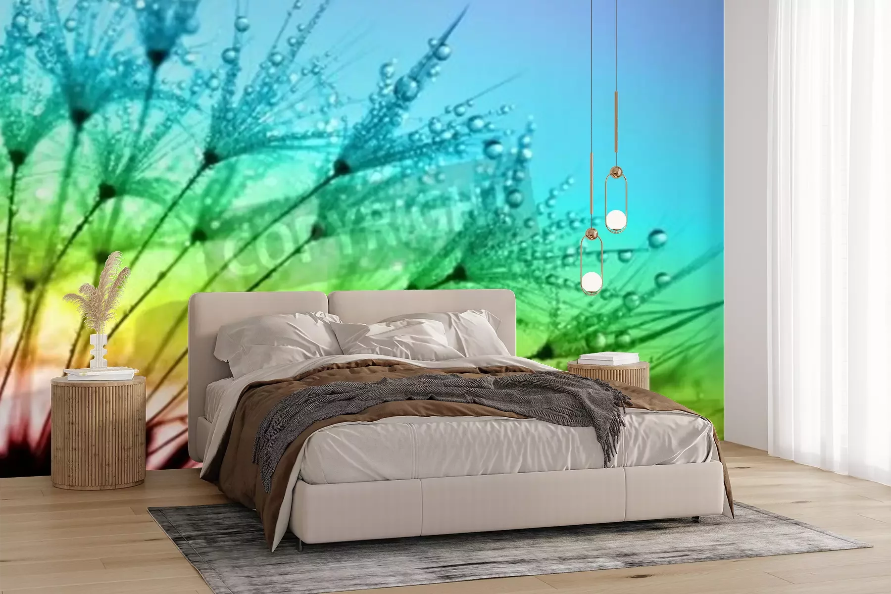 Fototapete Pusteblume auf regenbogenfarbenem Hintergrund