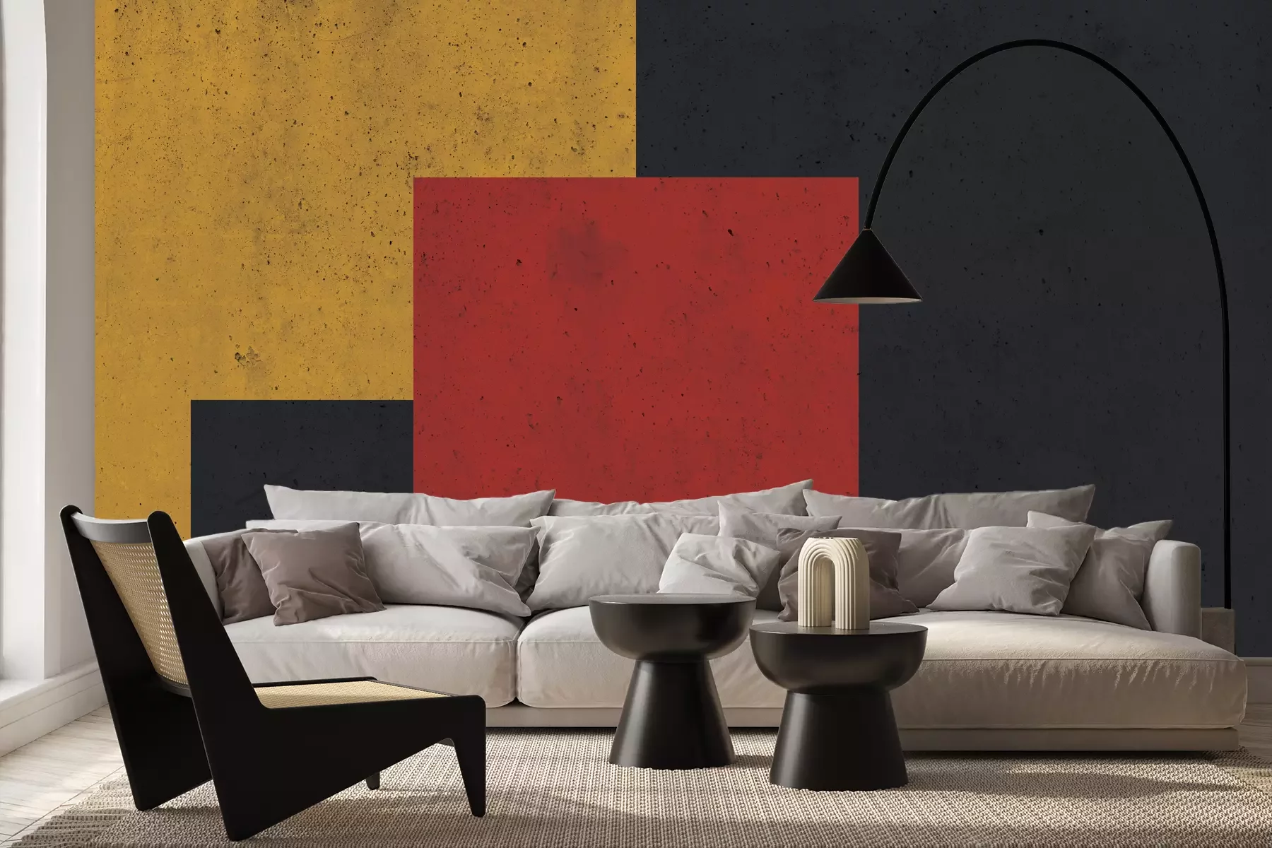 Quadrat auf gelb-schwarzem grund auf betontextur