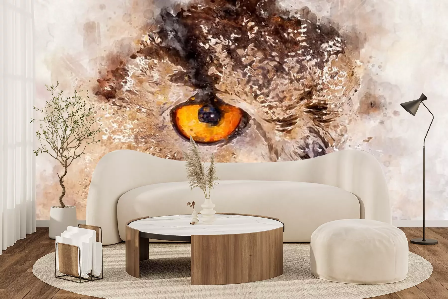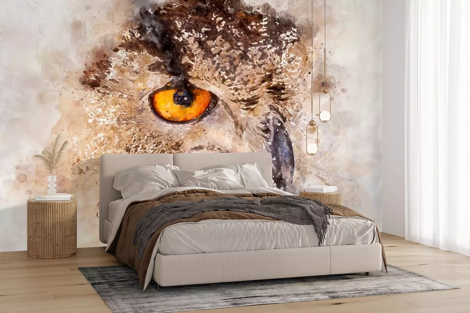 Fototapete Räuberische Eule mit Aquarellfarben gemalt