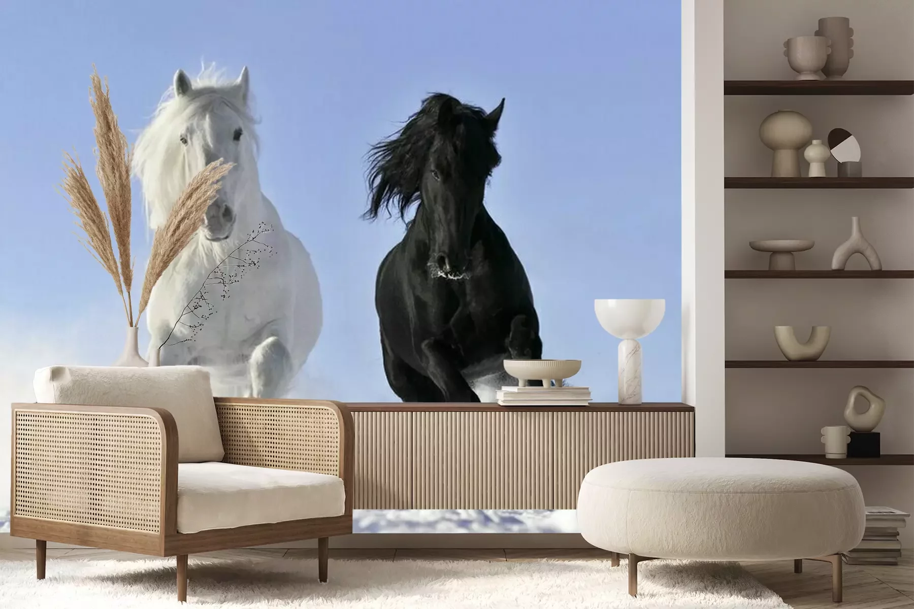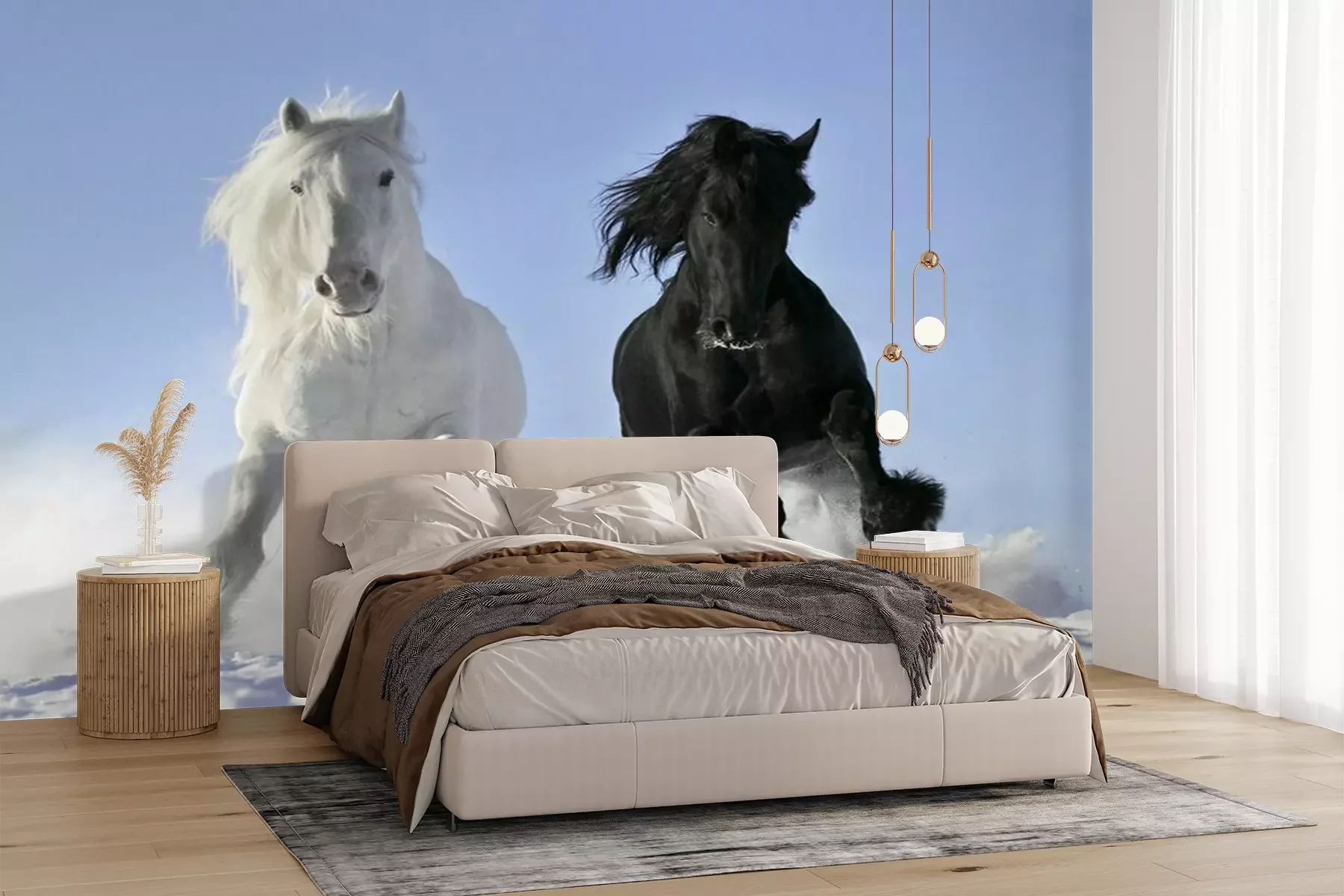 Galoppierendes pferd im schneeProblemlose Lieferung durch vertrauenswürdige Spediteure