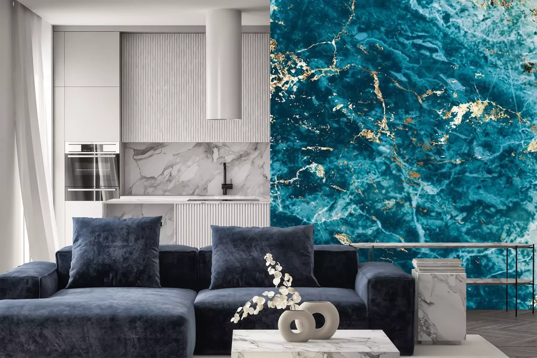 Fototapete Raues Meer aus blauem Marmor