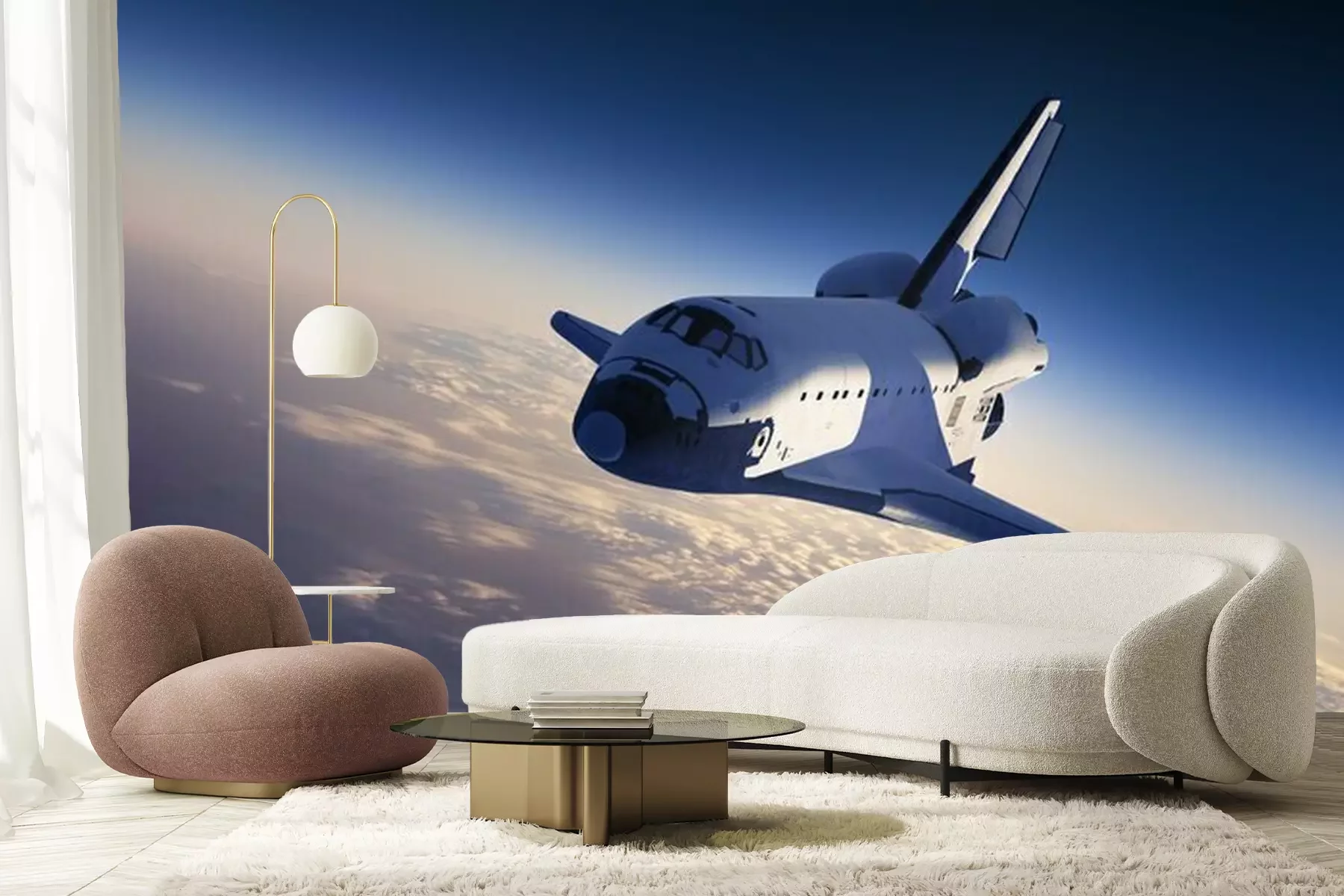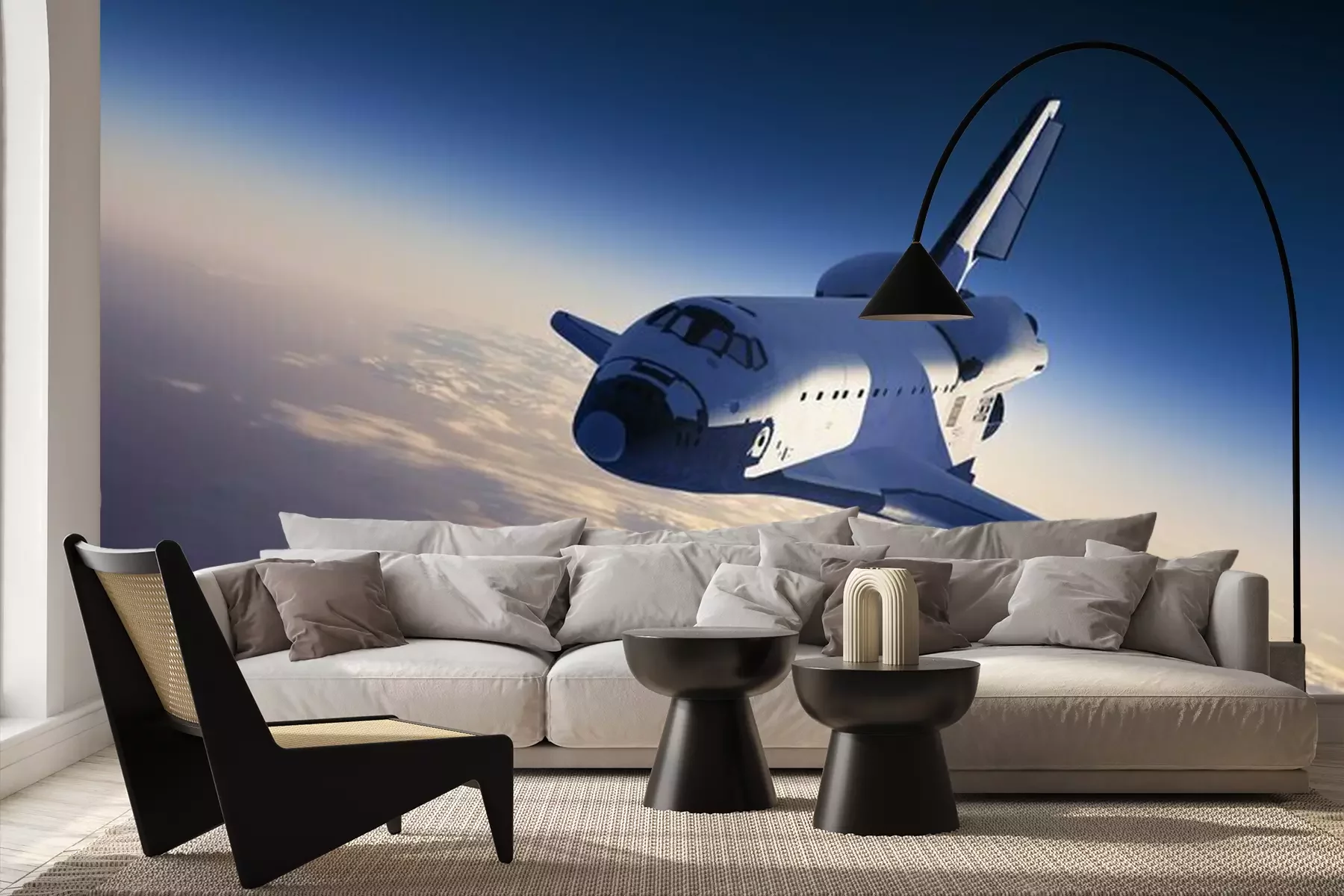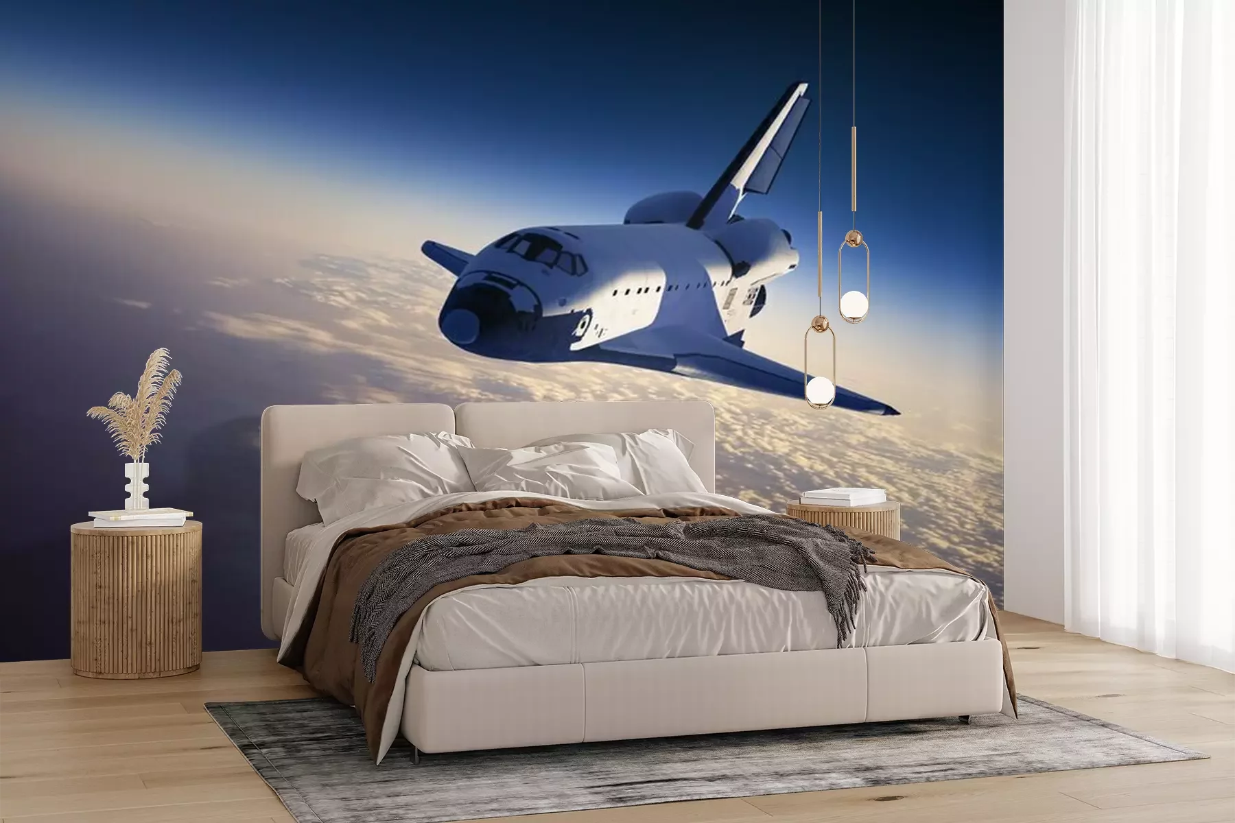 Fototapete Raumschiff vor dem Hintergrund der Wolken
