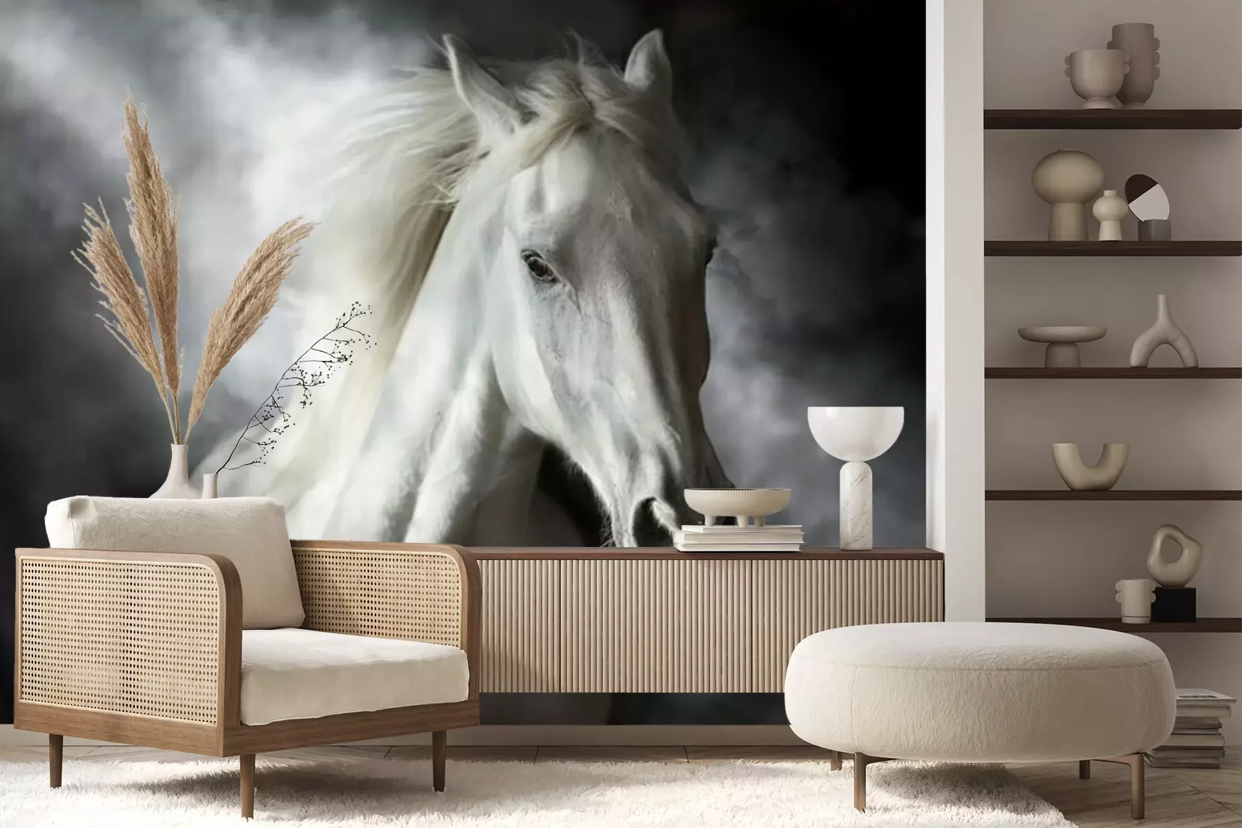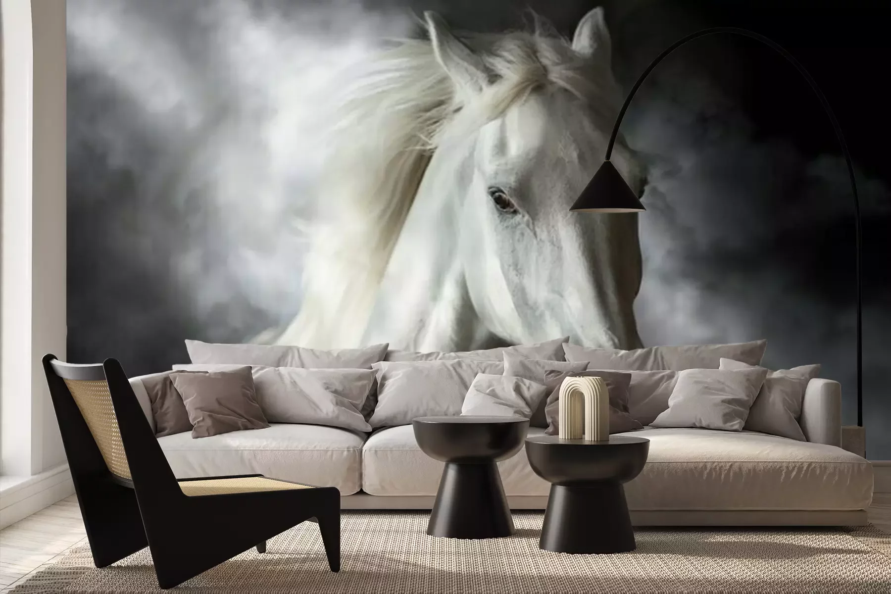 Das Material Premium+ besteht aus einer strukturierten Vinyl-Oberschicht und einem Trägermaterial (Vlies) mit einer Grammatur von 255 g/m², das kleine Unebenheiten der Wand zuverlässig kaschiert. Die feine Sandstruktur verleiht der Oberfläche eine luxuriöse Haptik, während das halbmatte Finish die Tiefe der Farben betont. Das Material ist dampfdurchlässig – so kann diese Fototapete auch in Küchen und Badezimmern eingesetzt werden. Die maximale Breite einer Tapetenbahn beträgt 100 cm. Bei größeren Abmessungen besteht die Fototapete aus mehreren gleich großen Bahnen. Der Kleber wird direkt auf die Wand aufgetragen, und die Fototapete wird auf Stoß angebracht, was für einen ästhetischen Effekt ohne sichtbare Fugen sorgt. Die Oberfläche ist pflegeleicht und kann bei Bedarf sanft mit einem feuchten Tuch abgewischt werden.