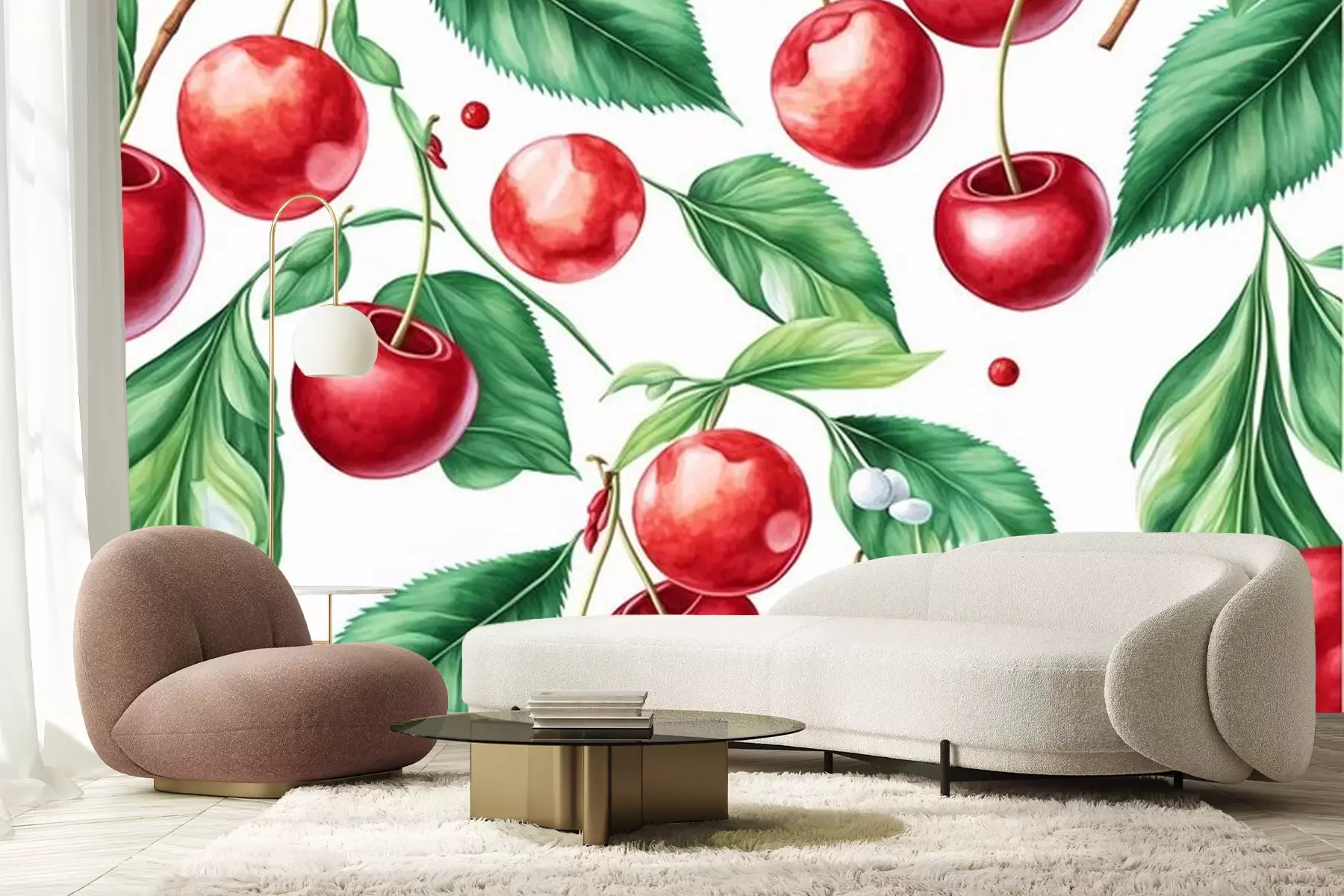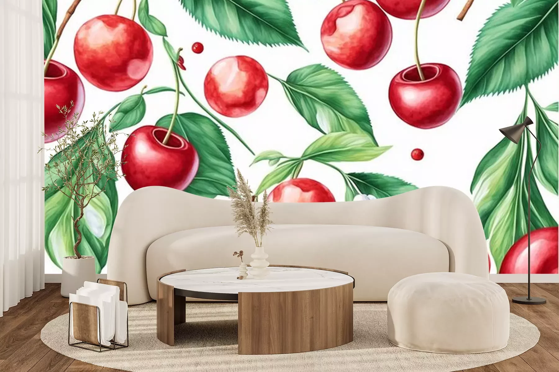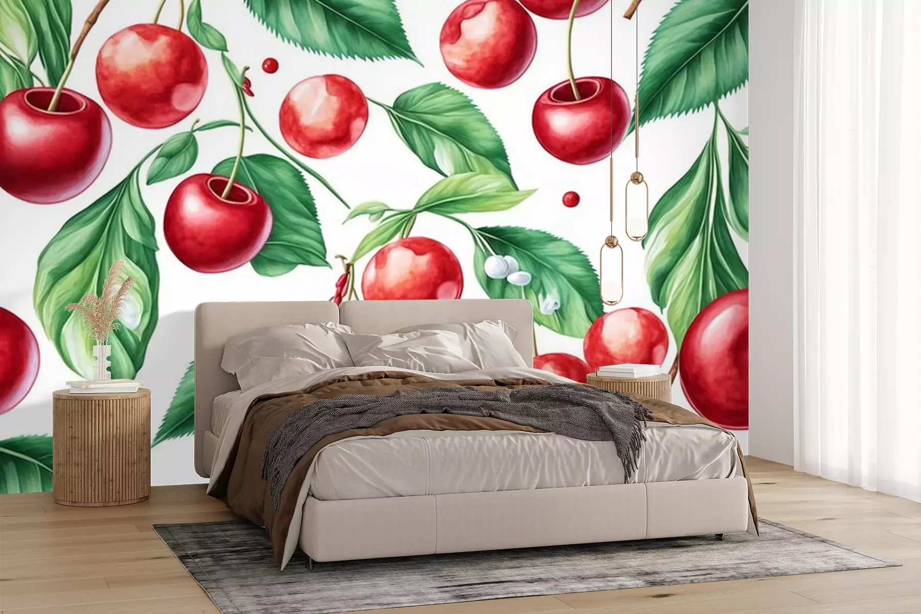 Fototapete Reife Kirschfrüchte an den Zweigen
