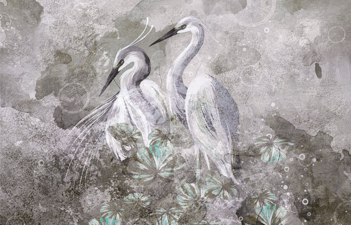 Fototapete: Reiher in einem abstrakten Ansatz V2