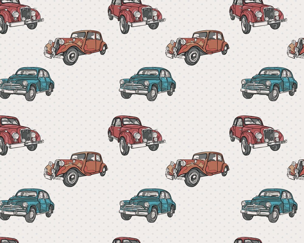 Fototapete: Retro-Autos auf einem gepunkteten Hintergrund