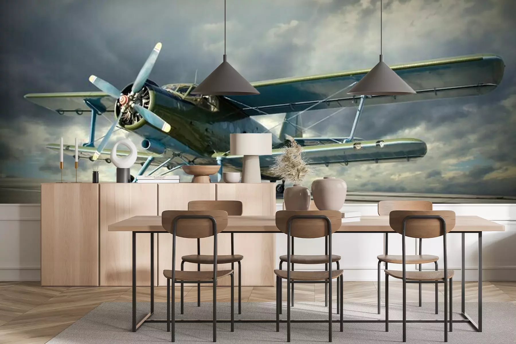 Retro Flugzeuge in Bewegung am HimmelFototapete