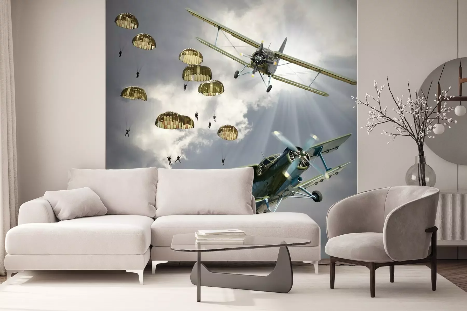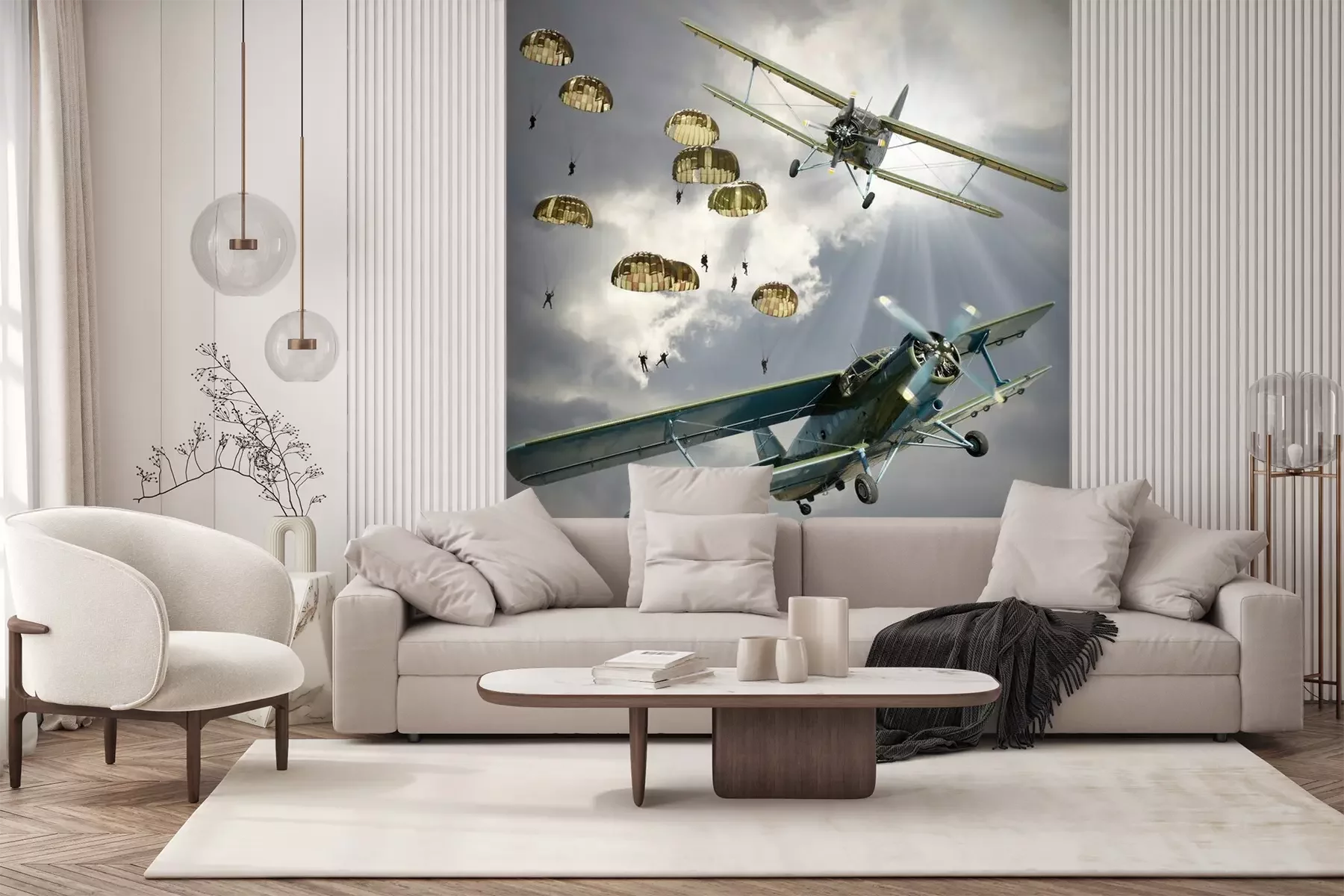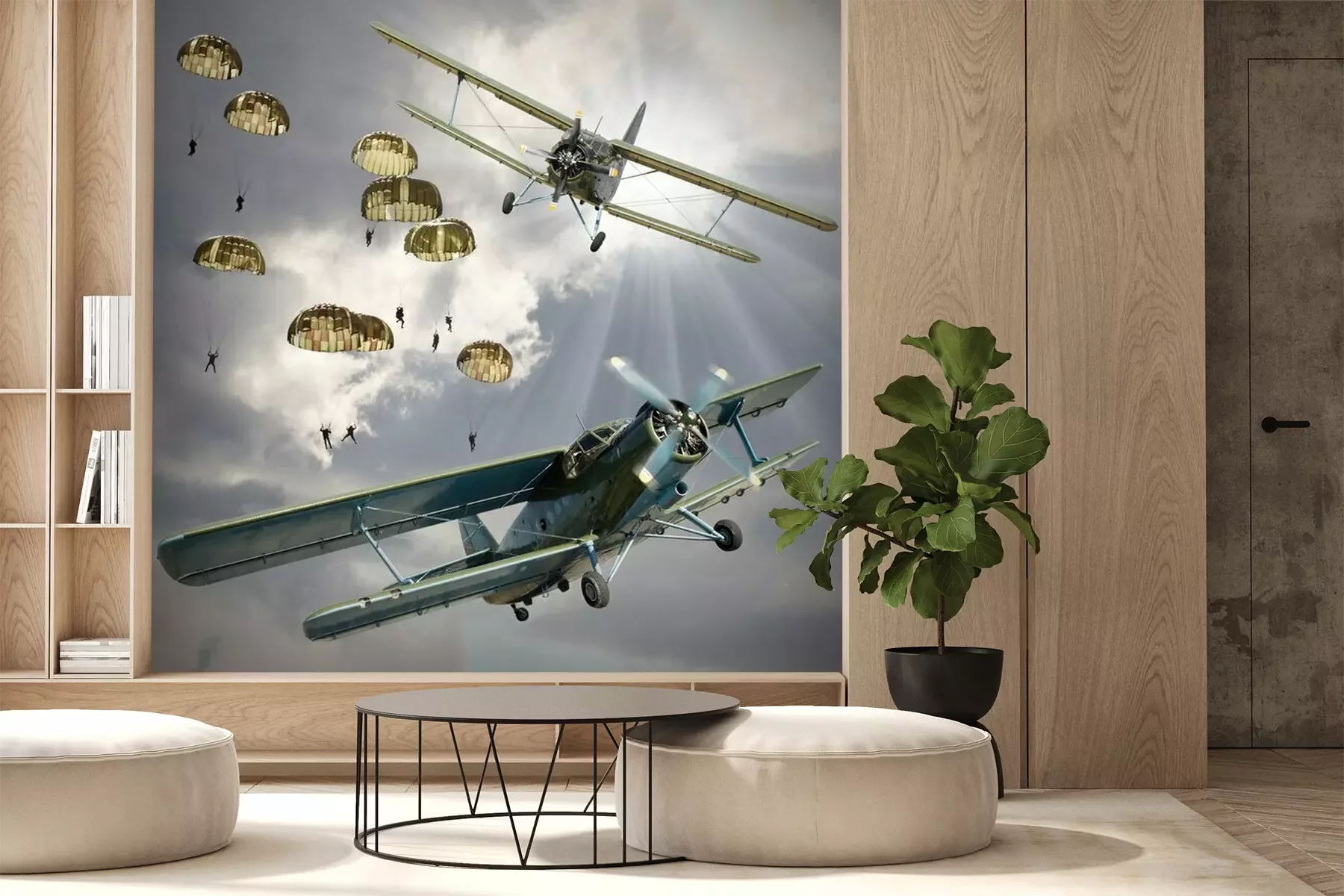 Retro Flugzeuge in Bewegung am HimmelFototapete