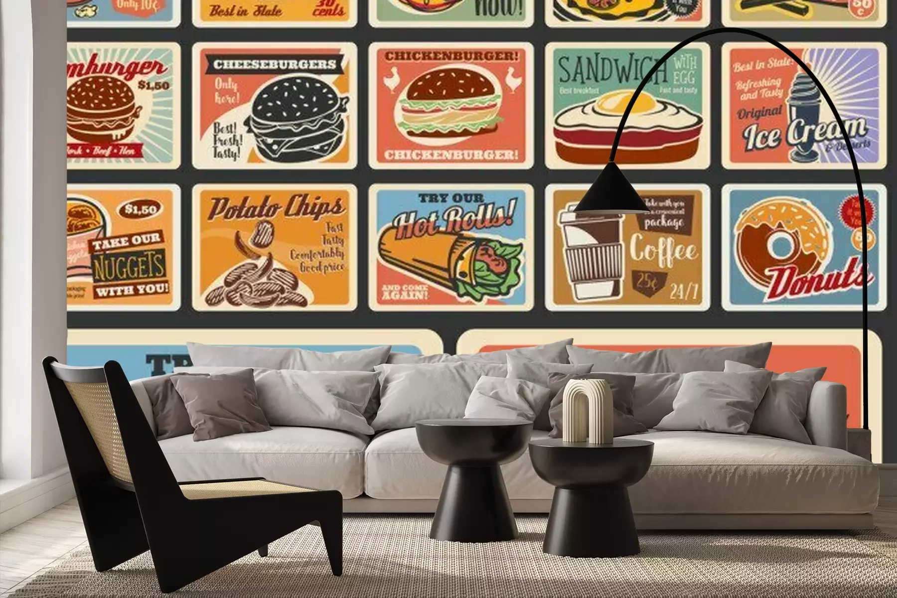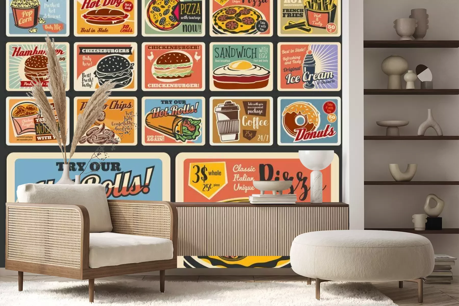 Bild mit Burgern und PizzaProblemlose Lieferung durch vertrauenswürdige Spediteure