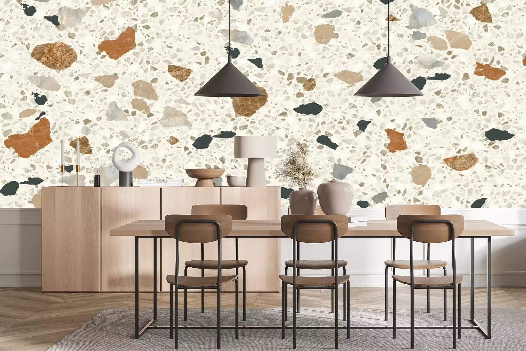 Das Material Premium+ besteht aus einer strukturierten Vinyl-Oberschicht und einem Trägermaterial (Vlies) mit einer Grammatur von 255 g/m², das kleine Unebenheiten der Wand zuverlässig kaschiert. Die feine Sandstruktur verleiht der Oberfläche eine luxuriöse Haptik, während das halbmatte Finish die Tiefe der Farben betont. Das Material ist dampfdurchlässig – so kann diese Fototapete auch in Küchen und Badezimmern eingesetzt werden. Die maximale Breite einer Tapetenbahn beträgt 100 cm. Bei größeren Abmessungen besteht die Fototapete aus mehreren gleich großen Bahnen. Der Kleber wird direkt auf die Wand aufgetragen, und die Fototapete wird auf Stoß angebracht, was für einen ästhetischen Effekt ohne sichtbare Fugen sorgt. Die Oberfläche ist pflegeleicht und kann bei Bedarf sanft mit einem feuchten Tuch abgewischt werden.