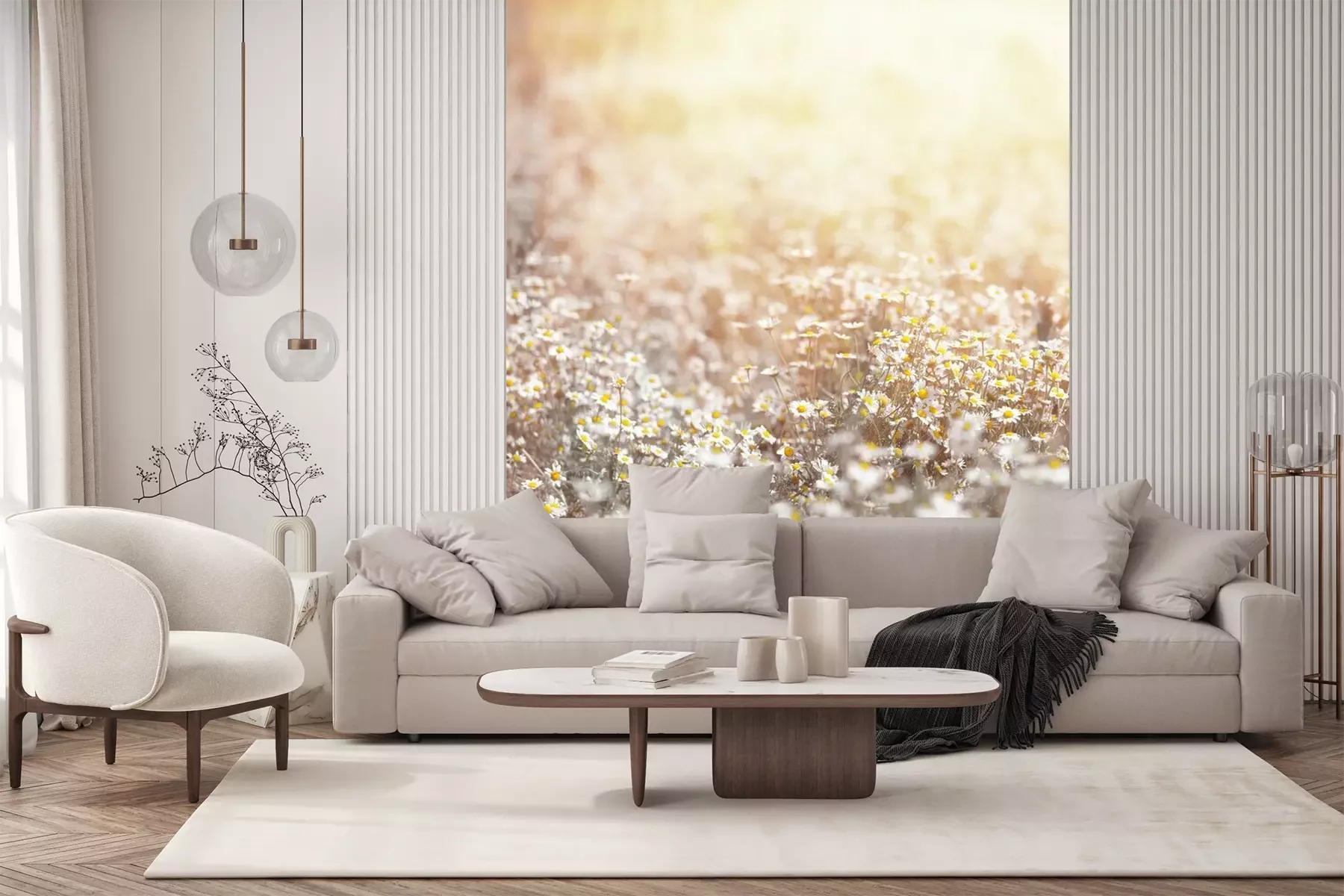 Das Material Standard ist ein hochwertiges Latexmaterial mit einer glatten, matten Oberfläche. Durch den Einsatz von HP-Latex-Drucktechnologie sind die Farben satt, langlebig und UV-beständig. So bleibt das Muster über Jahre hinweg makellos schön. Die verschmutzte Oberfläche dieses Materials kann sanft mit einem trockenen Tuch abgewischt werden. Die maximale Breite einer einzelnen Bahn beträgt 95 cm oder 105 cm – je nach Breite der bestellten Fototapete. Bei Fototapeten mit größeren Abmessungen besteht der Ausdruck aus mehreren gleich großen Tapetenbahnen. Die Fototapete wird auf Stoß angebracht, wodurch die Fugen nahezu unsichtbar sind.