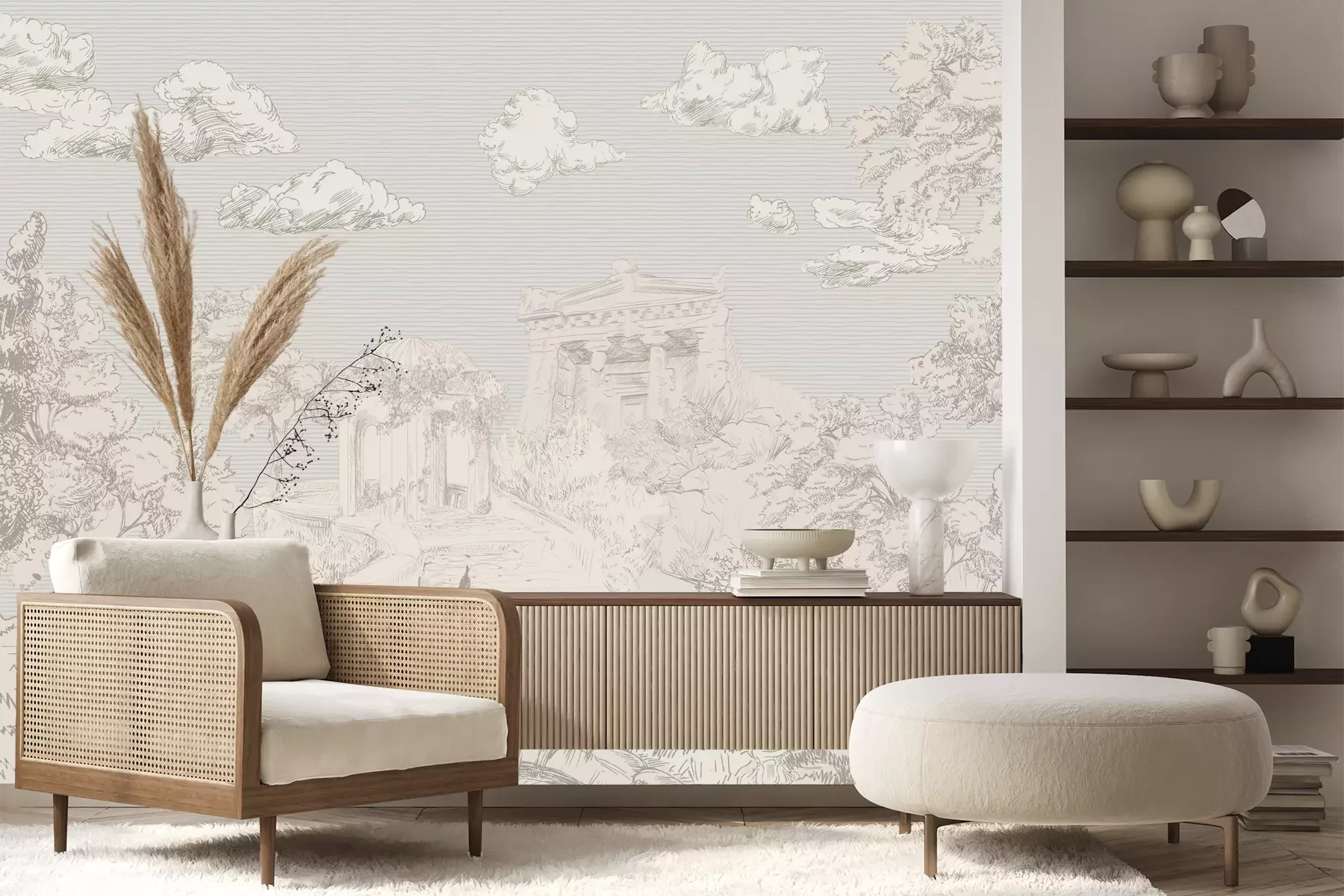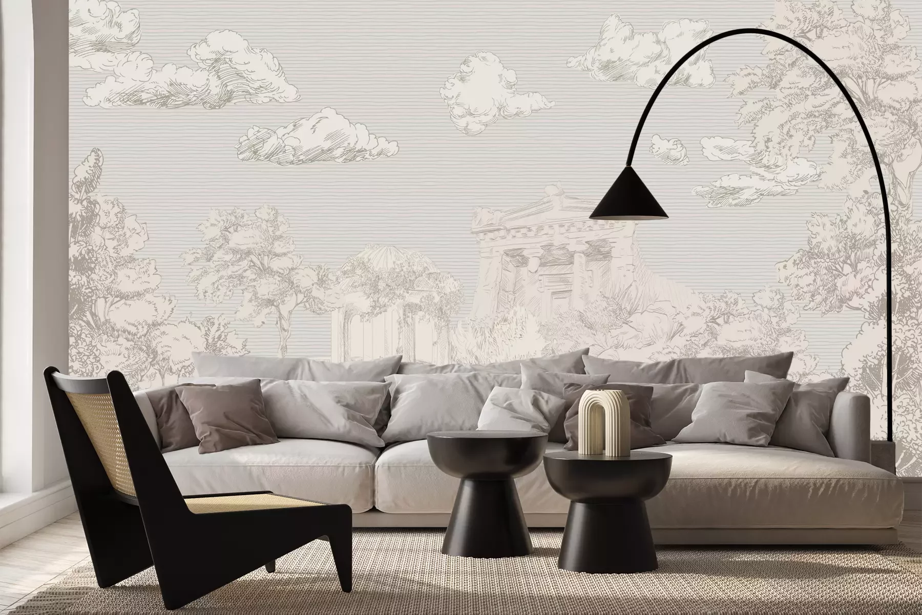 Das Material Premium+ besteht aus einer strukturierten Vinyl-Oberschicht und einem Trägermaterial (Vlies) mit einer Grammatur von 255 g/m², das kleine Unebenheiten der Wand zuverlässig kaschiert. Die feine Sandstruktur verleiht der Oberfläche eine luxuriöse Haptik, während das halbmatte Finish die Tiefe der Farben betont. Das Material ist dampfdurchlässig – so kann diese Fototapete auch in Küchen und Badezimmern eingesetzt werden. Die maximale Breite einer Tapetenbahn beträgt 100 cm. Bei größeren Abmessungen besteht die Fototapete aus mehreren gleich großen Bahnen. Der Kleber wird direkt auf die Wand aufgetragen, und die Fototapete wird auf Stoß angebracht, was für einen ästhetischen Effekt ohne sichtbare Fugen sorgt. Die Oberfläche ist pflegeleicht und kann bei Bedarf sanft mit einem feuchten Tuch abgewischt werden.