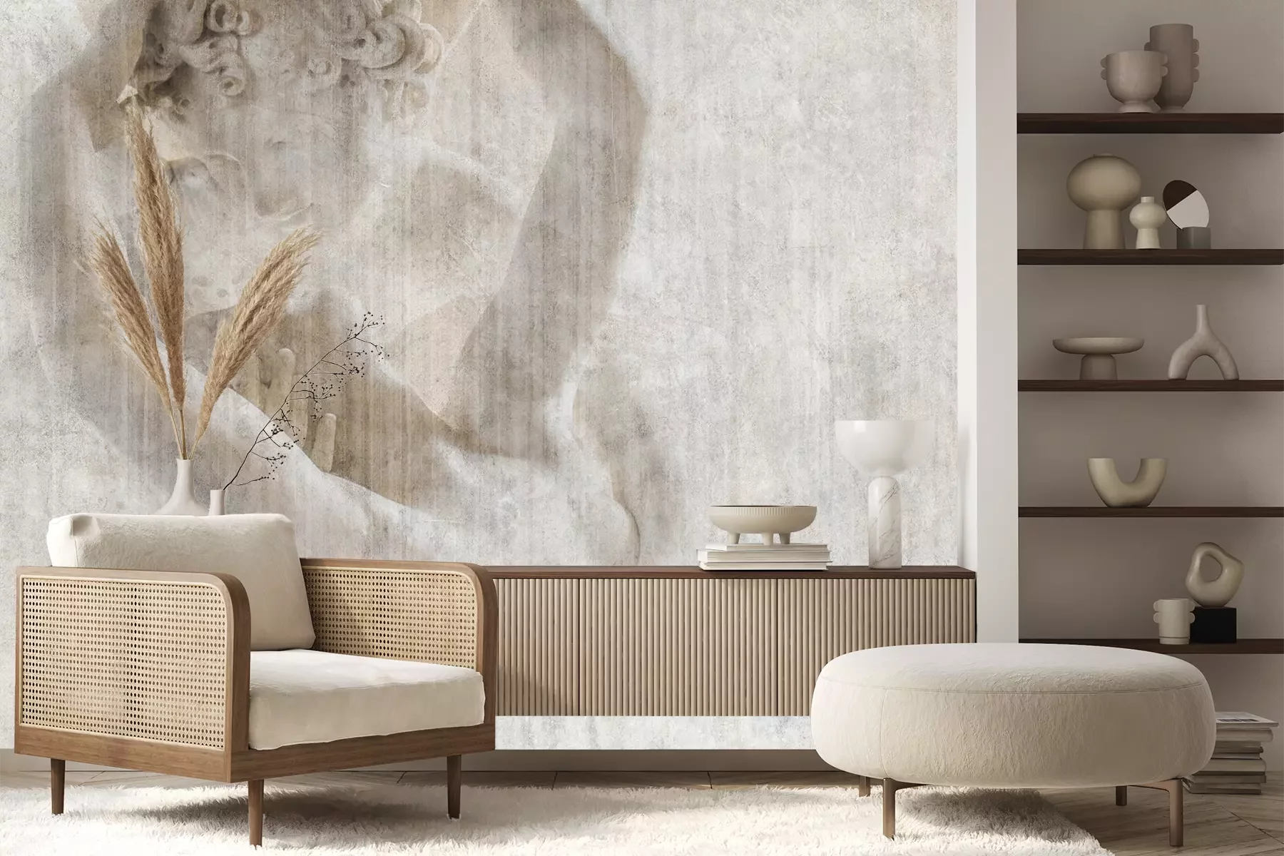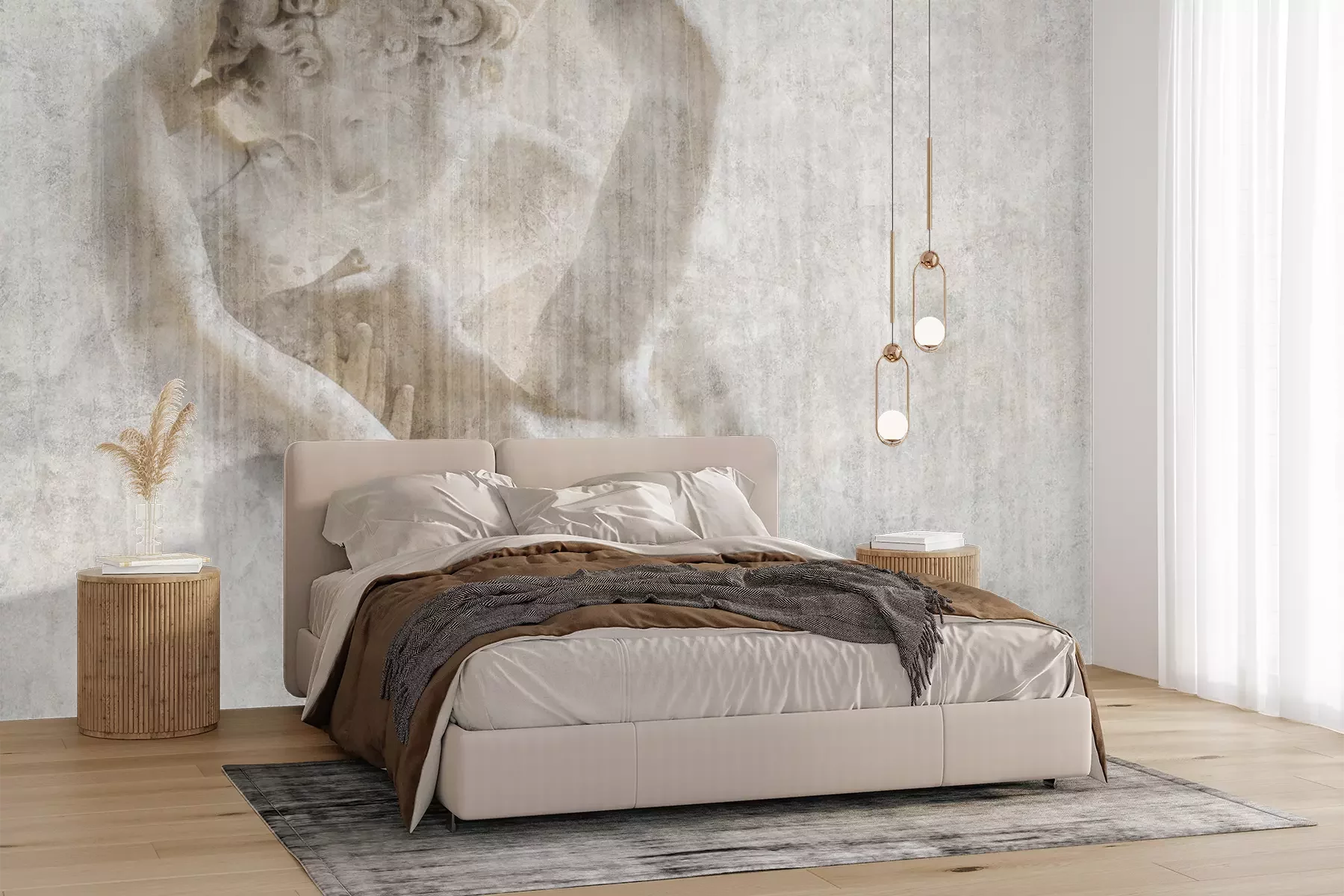 Das Material Premium+ besteht aus einer strukturierten Vinyl-Oberschicht und einem Trägermaterial (Vlies) mit einer Grammatur von 255 g/m², das kleine Unebenheiten der Wand zuverlässig kaschiert. Die feine Sandstruktur verleiht der Oberfläche eine luxuriöse Haptik, während das halbmatte Finish die Tiefe der Farben betont. Das Material ist dampfdurchlässig – so kann diese Fototapete auch in Küchen und Badezimmern eingesetzt werden. Die maximale Breite einer Tapetenbahn beträgt 100 cm. Bei größeren Abmessungen besteht die Fototapete aus mehreren gleich großen Bahnen. Der Kleber wird direkt auf die Wand aufgetragen, und die Fototapete wird auf Stoß angebracht, was für einen ästhetischen Effekt ohne sichtbare Fugen sorgt. Die Oberfläche ist pflegeleicht und kann bei Bedarf sanft mit einem feuchten Tuch abgewischt werden.