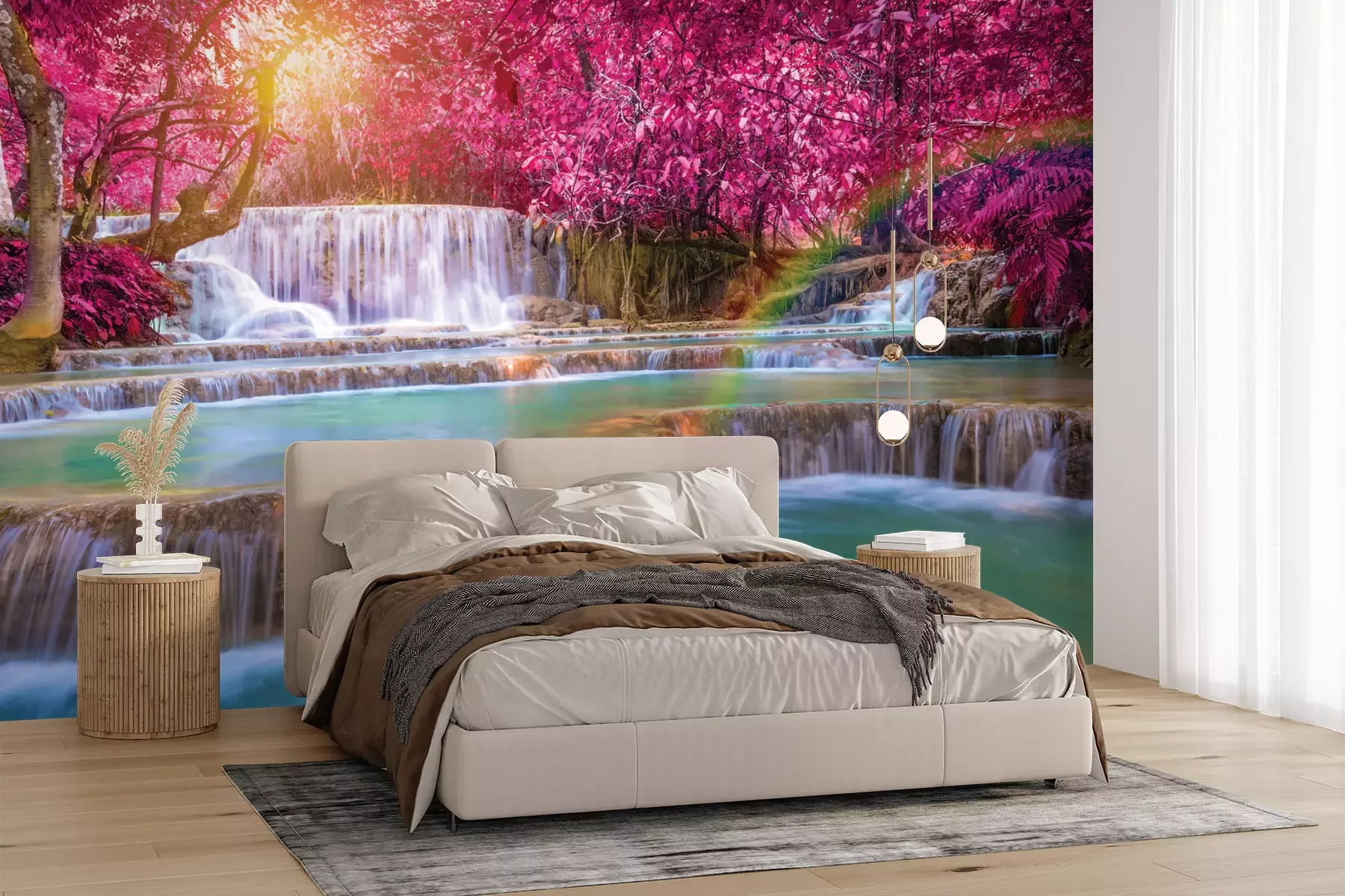 Die Fototapeten werden in Bahnen geliefert. Die Größe und die Anzahl der Bahnen, aus denen die gesamte Fototapete besteht, hängen vom gewählten Material ab. Wenn die Größe die maximale Breite des Materials überschreitet, besteht der Ausdruck aus mehreren gleich großen Bahnen.