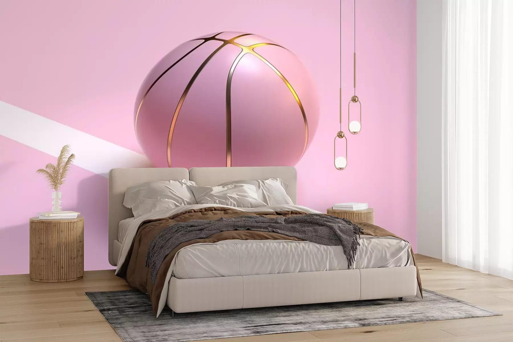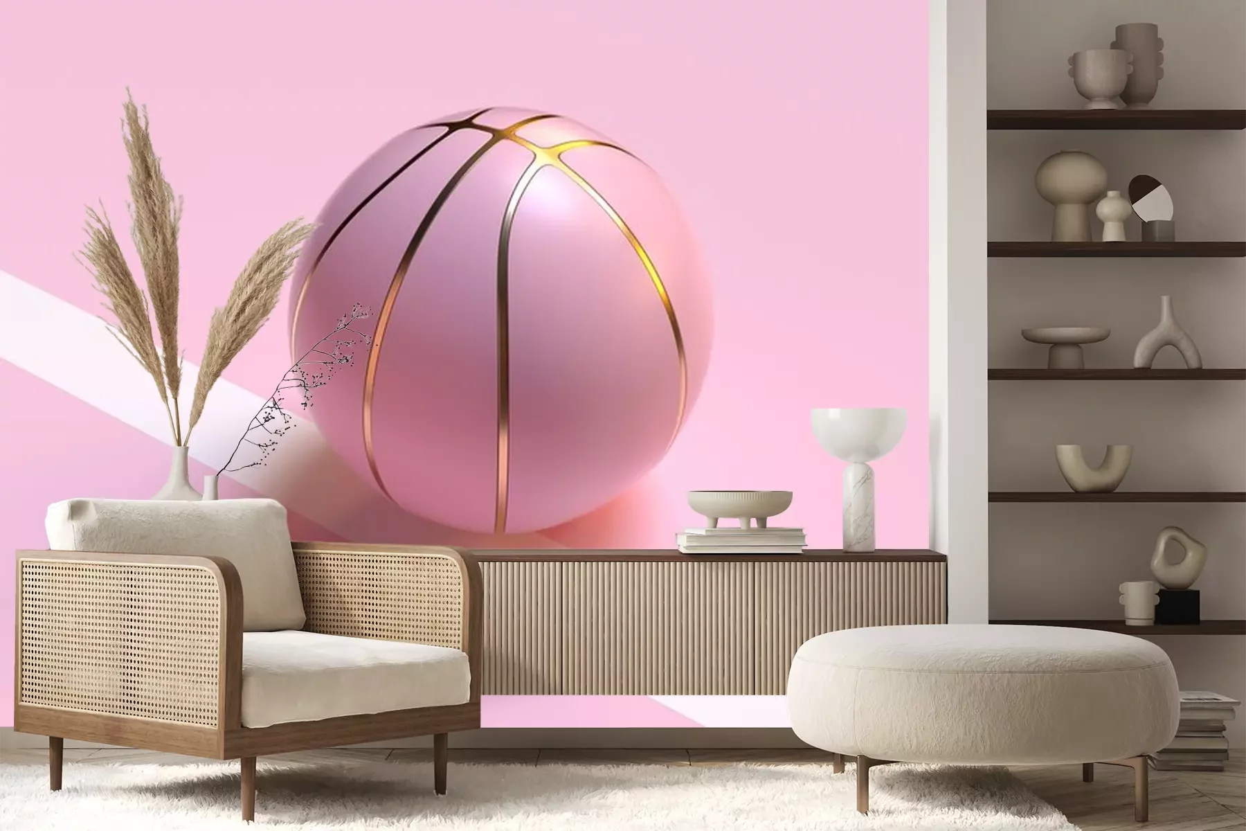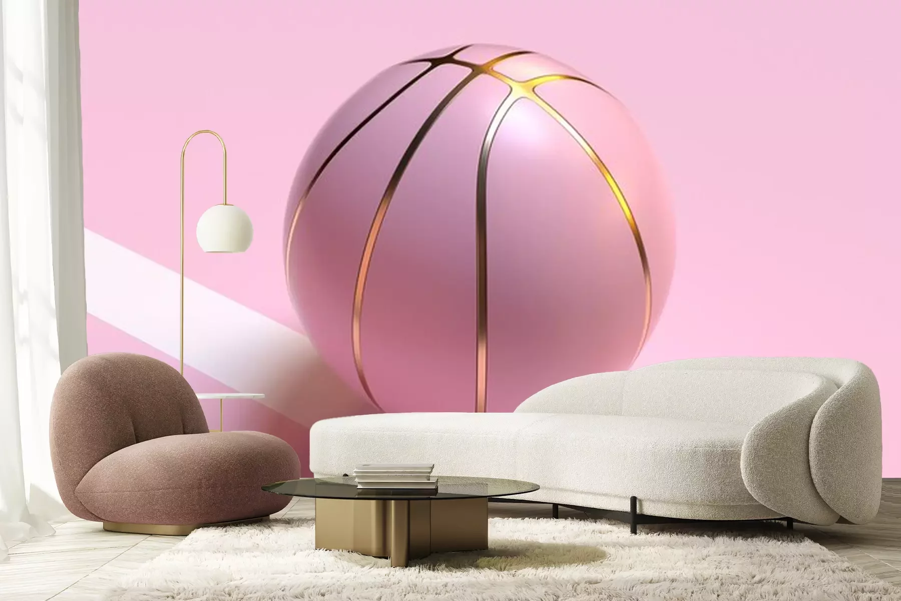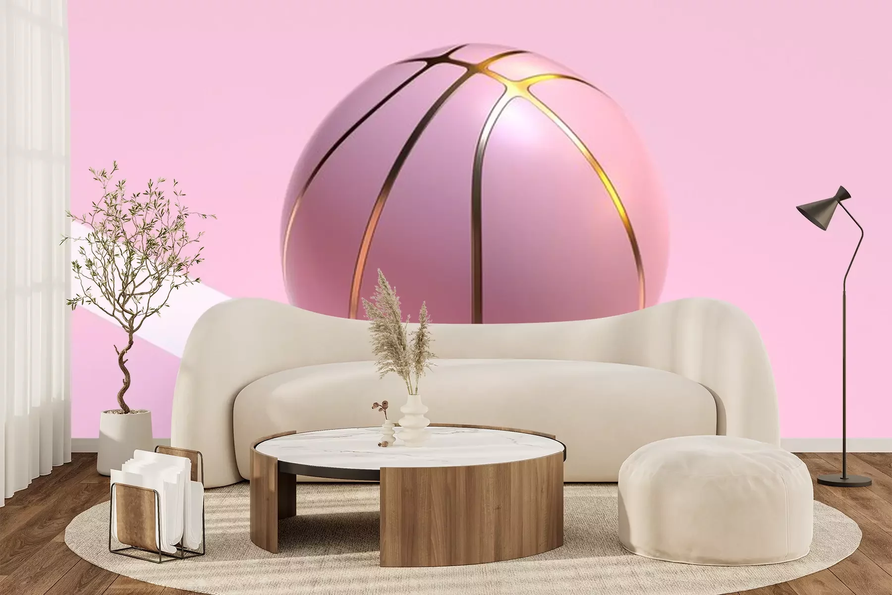 Fototapete Rosa Basketball auf pastellfarbenem Hintergrund