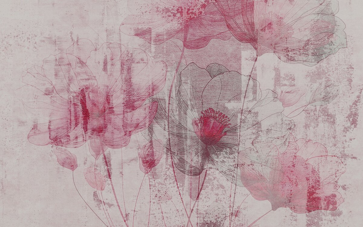 Fototapete: Rosa Blüten auf einem strukturierten Hintergrund