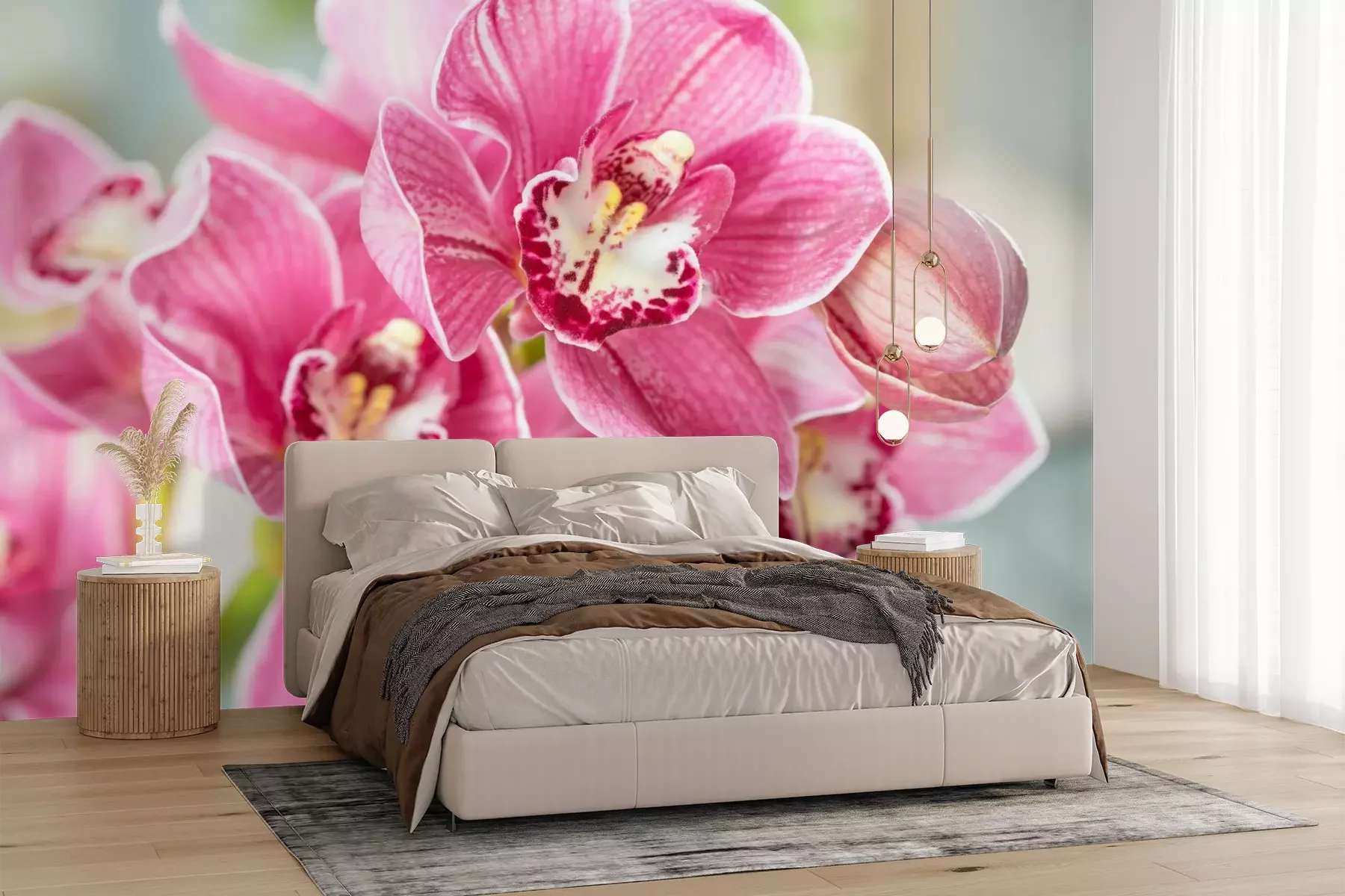 Die Fototapeten werden in Bahnen geliefert. Die Größe und die Anzahl der Bahnen, aus denen die gesamte Fototapete besteht, hängen vom gewählten Material ab. Wenn die Größe die maximale Breite des Materials überschreitet, besteht der Ausdruck aus mehreren gleich großen Bahnen.