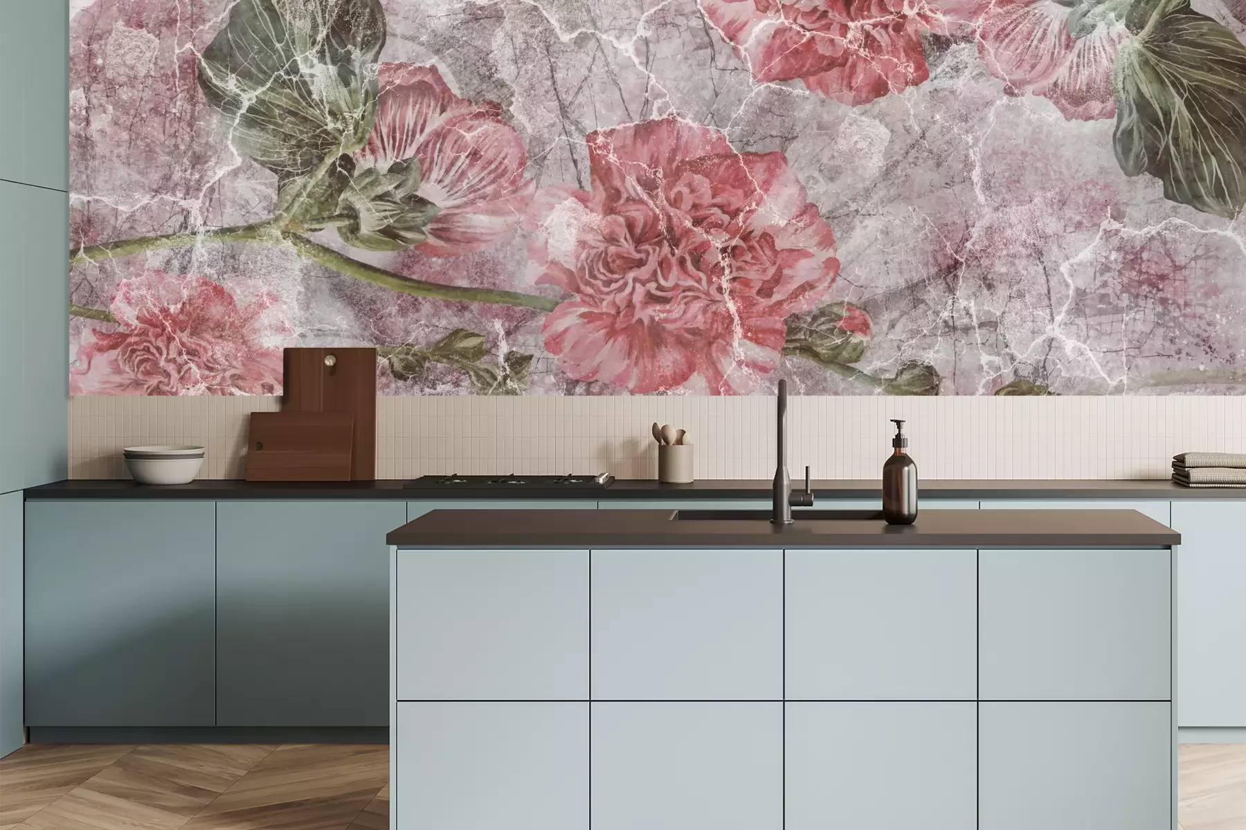 Das Material Premium+ besteht aus einer strukturierten Vinyl-Oberschicht und einem Trägermaterial (Vlies) mit einer Grammatur von 255 g/m², das kleine Unebenheiten der Wand zuverlässig kaschiert. Die feine Sandstruktur verleiht der Oberfläche eine luxuriöse Haptik, während das halbmatte Finish die Tiefe der Farben betont. Das Material ist dampfdurchlässig – so kann diese Fototapete auch in Küchen und Badezimmern eingesetzt werden. Die maximale Breite einer Tapetenbahn beträgt 100 cm. Bei größeren Abmessungen besteht die Fototapete aus mehreren gleich großen Bahnen. Der Kleber wird direkt auf die Wand aufgetragen, und die Fototapete wird auf Stoß angebracht, was für einen ästhetischen Effekt ohne sichtbare Fugen sorgt. Die Oberfläche ist pflegeleicht und kann bei Bedarf sanft mit einem feuchten Tuch abgewischt werden.