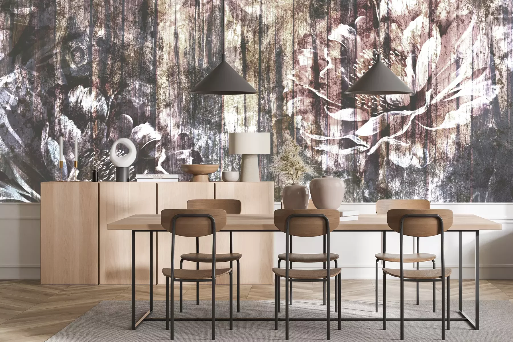 Das Material Standard ist ein hochwertiges Latexmaterial mit einer glatten, matten Oberfläche. Durch den Einsatz von HP-Latex-Drucktechnologie sind die Farben satt, langlebig und UV-beständig. So bleibt das Muster über Jahre hinweg makellos schön. Die verschmutzte Oberfläche dieses Materials kann sanft mit einem trockenen Tuch abgewischt werden. Die maximale Breite einer einzelnen Bahn beträgt 95 cm oder 105 cm – je nach Breite der bestellten Fototapete. Bei Fototapeten mit größeren Abmessungen besteht der Ausdruck aus mehreren gleich großen Tapetenbahnen. Die Fototapete wird auf Stoß angebracht, wodurch die Fugen nahezu unsichtbar sind.