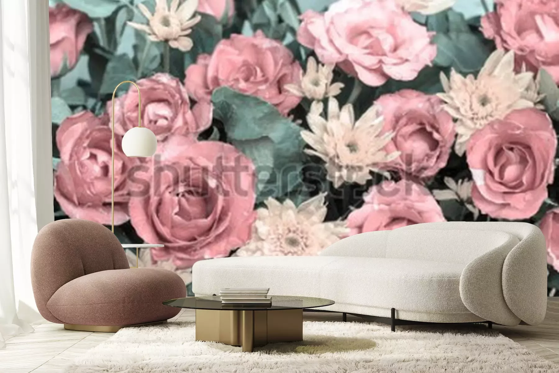 Fototapete Rosa Rosen im Vintage-Stil