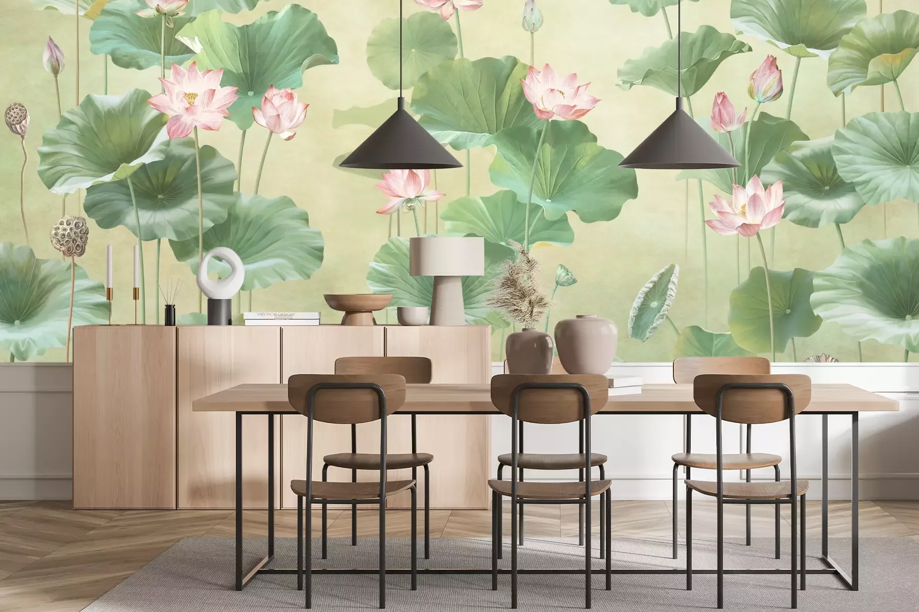 Das Material Premium+ besteht aus einer strukturierten Vinyl-Oberschicht und einem Trägermaterial (Vlies) mit einer Grammatur von 255 g/m², das kleine Unebenheiten der Wand zuverlässig kaschiert. Die feine Sandstruktur verleiht der Oberfläche eine luxuriöse Haptik, während das halbmatte Finish die Tiefe der Farben betont. Das Material ist dampfdurchlässig – so kann diese Fototapete auch in Küchen und Badezimmern eingesetzt werden. Die maximale Breite einer Tapetenbahn beträgt 100 cm. Bei größeren Abmessungen besteht die Fototapete aus mehreren gleich großen Bahnen. Der Kleber wird direkt auf die Wand aufgetragen, und die Fototapete wird auf Stoß angebracht, was für einen ästhetischen Effekt ohne sichtbare Fugen sorgt. Die Oberfläche ist pflegeleicht und kann bei Bedarf sanft mit einem feuchten Tuch abgewischt werden.