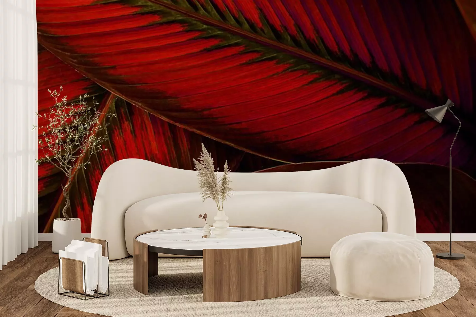 Fototapete Rote Blätter Textur hautnah