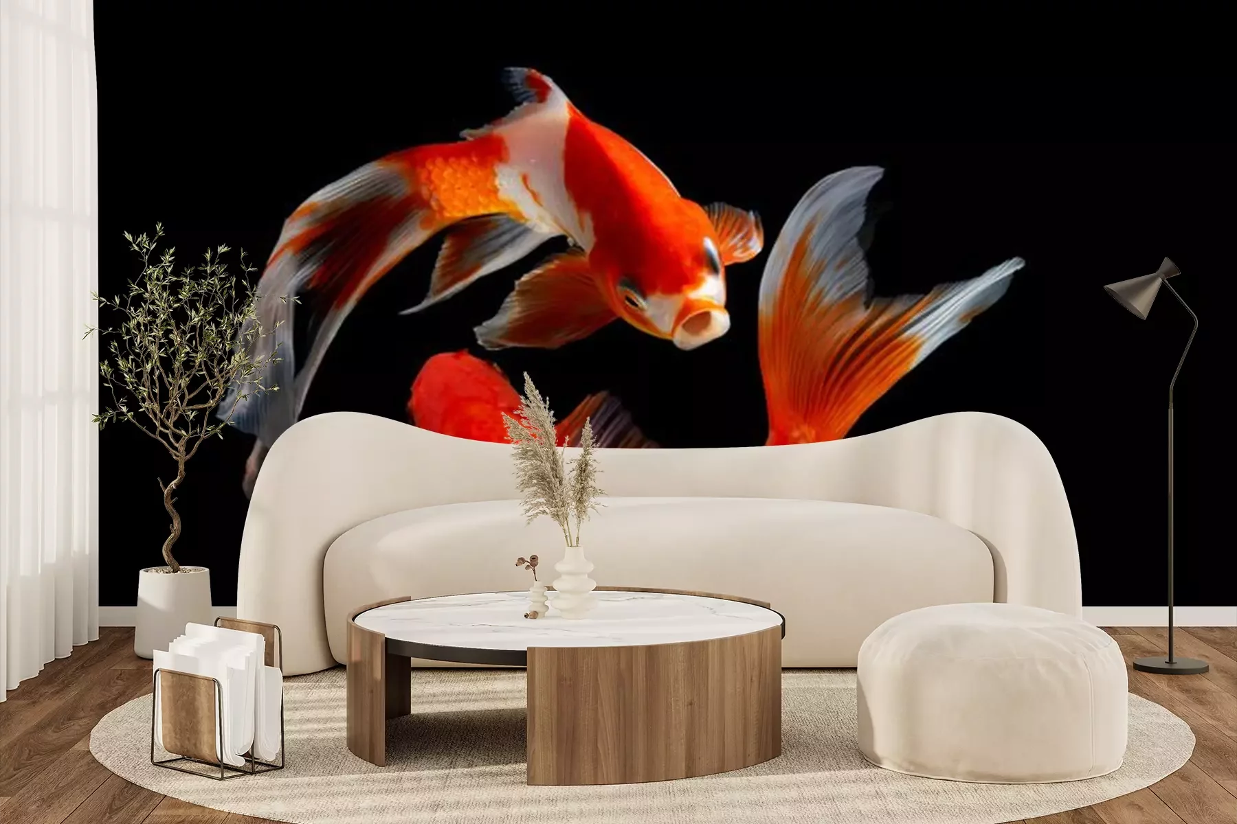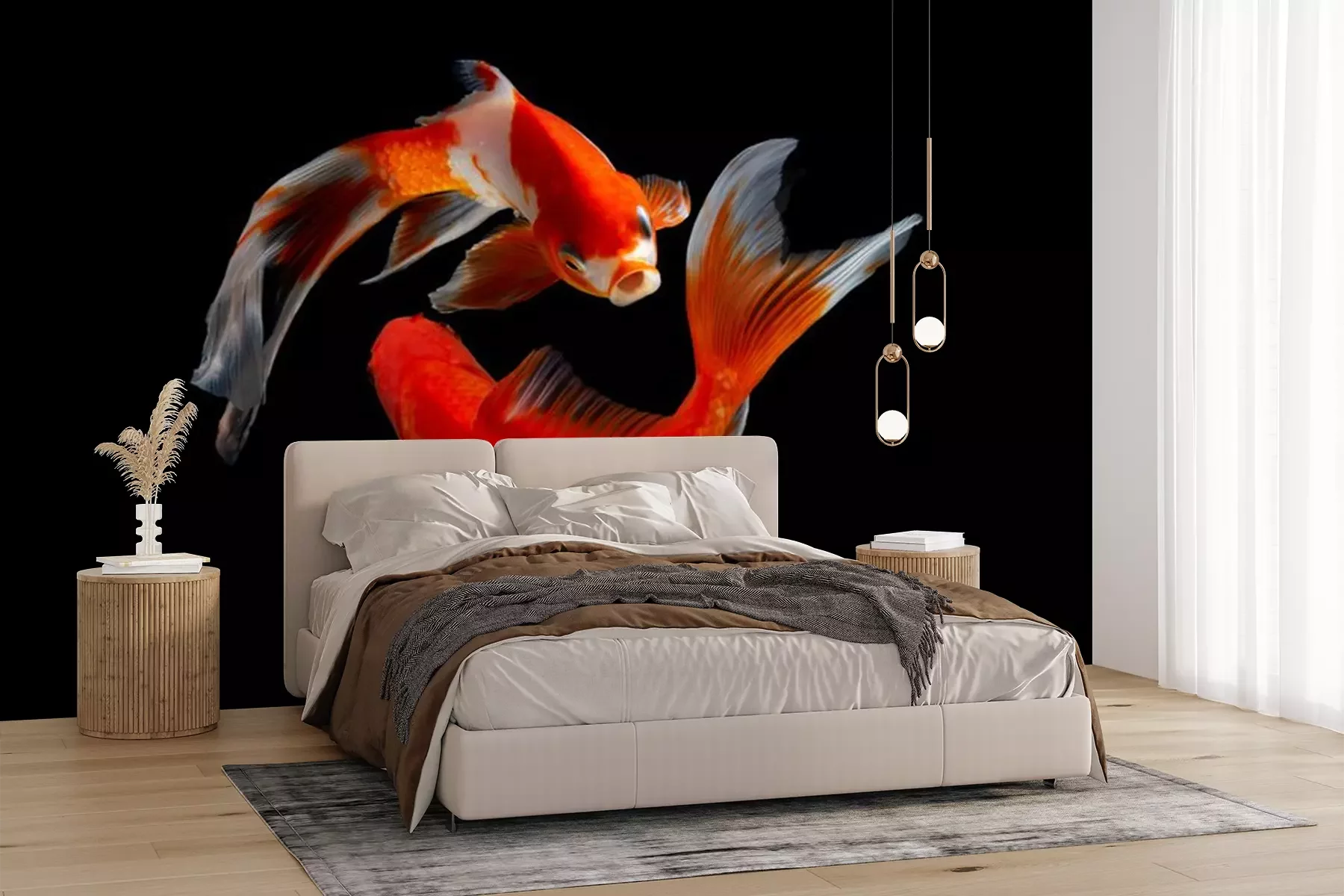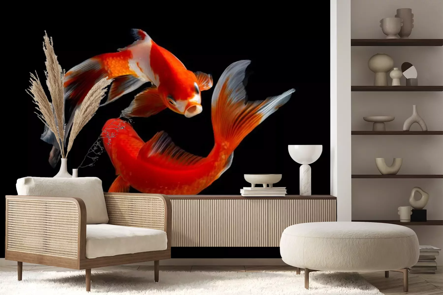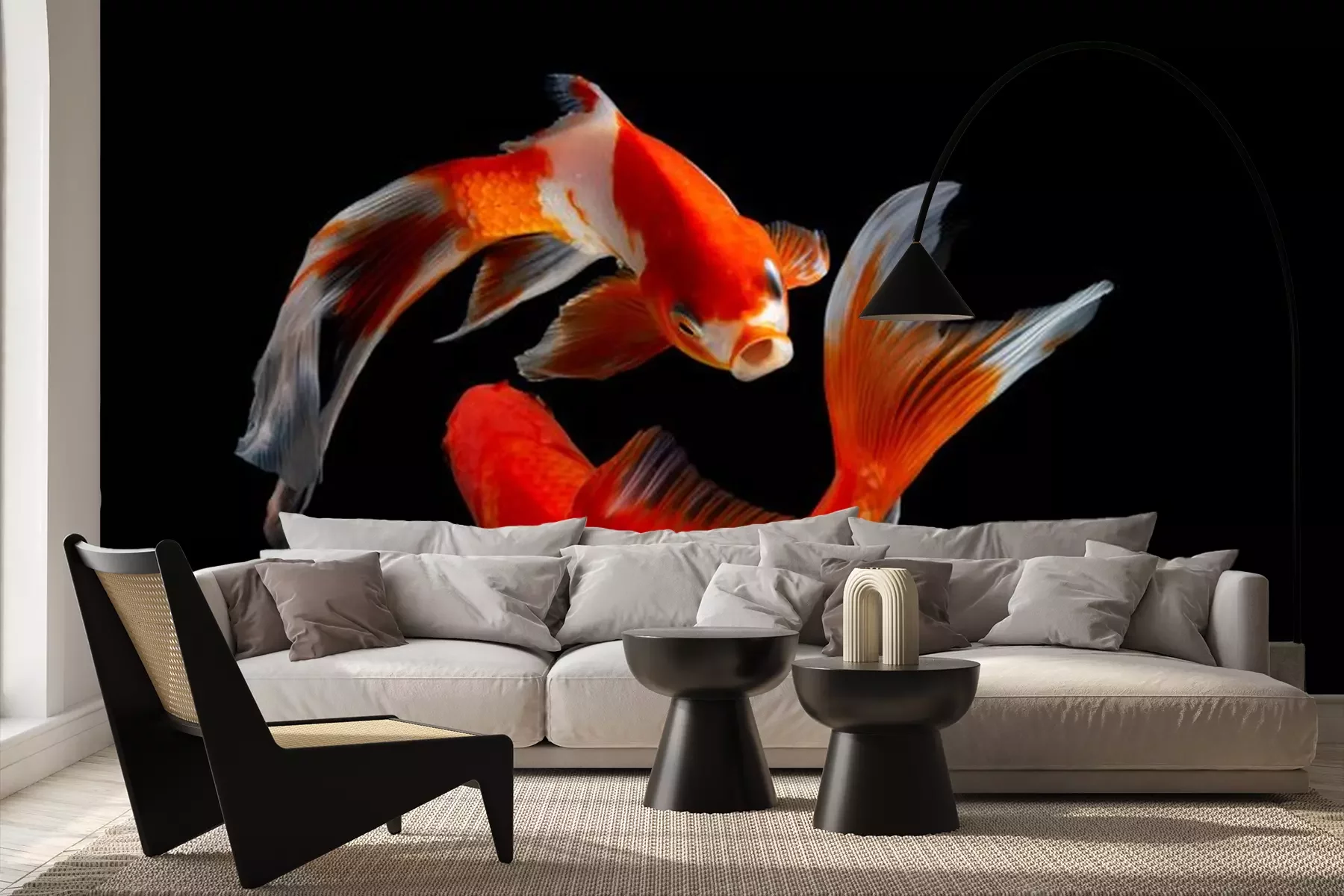 Fototapete Roter Fisch auf schwarzem Hintergrund