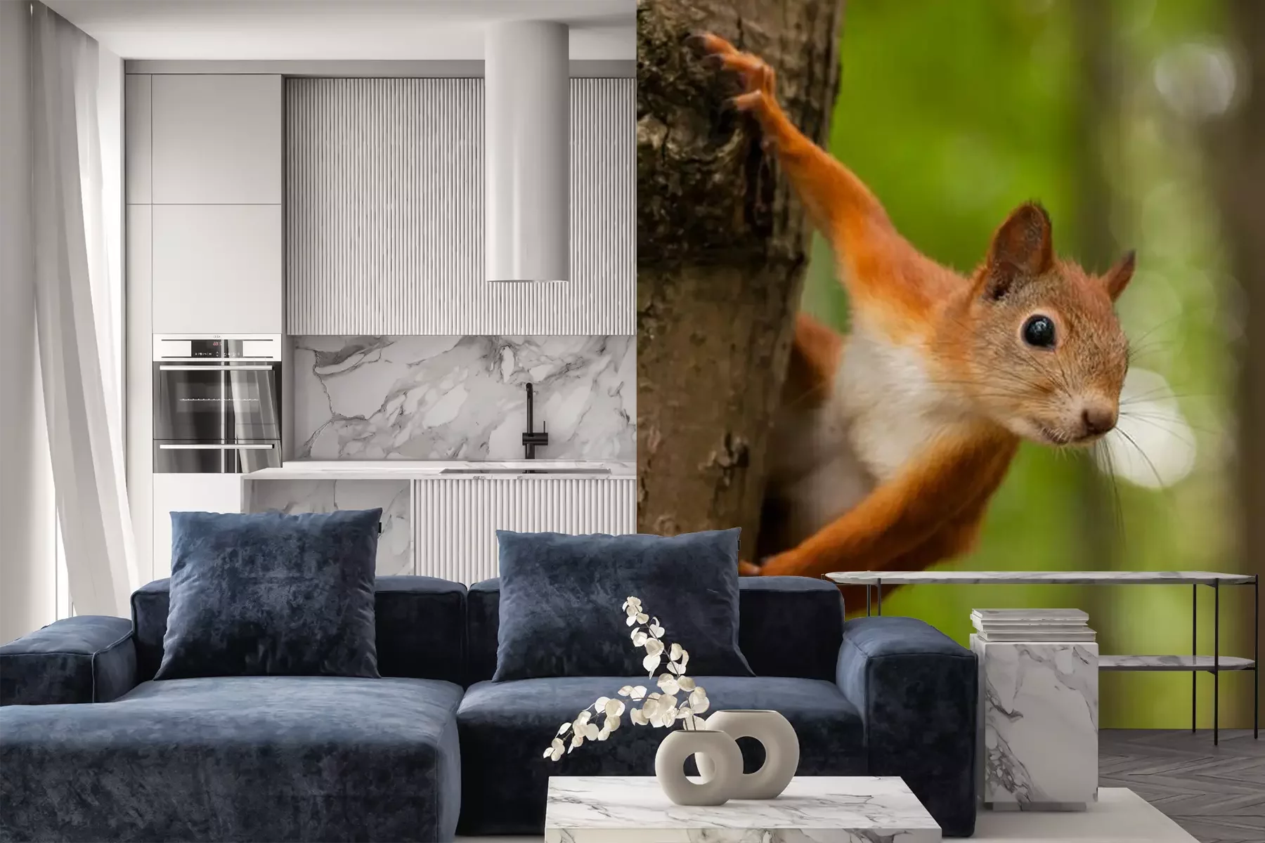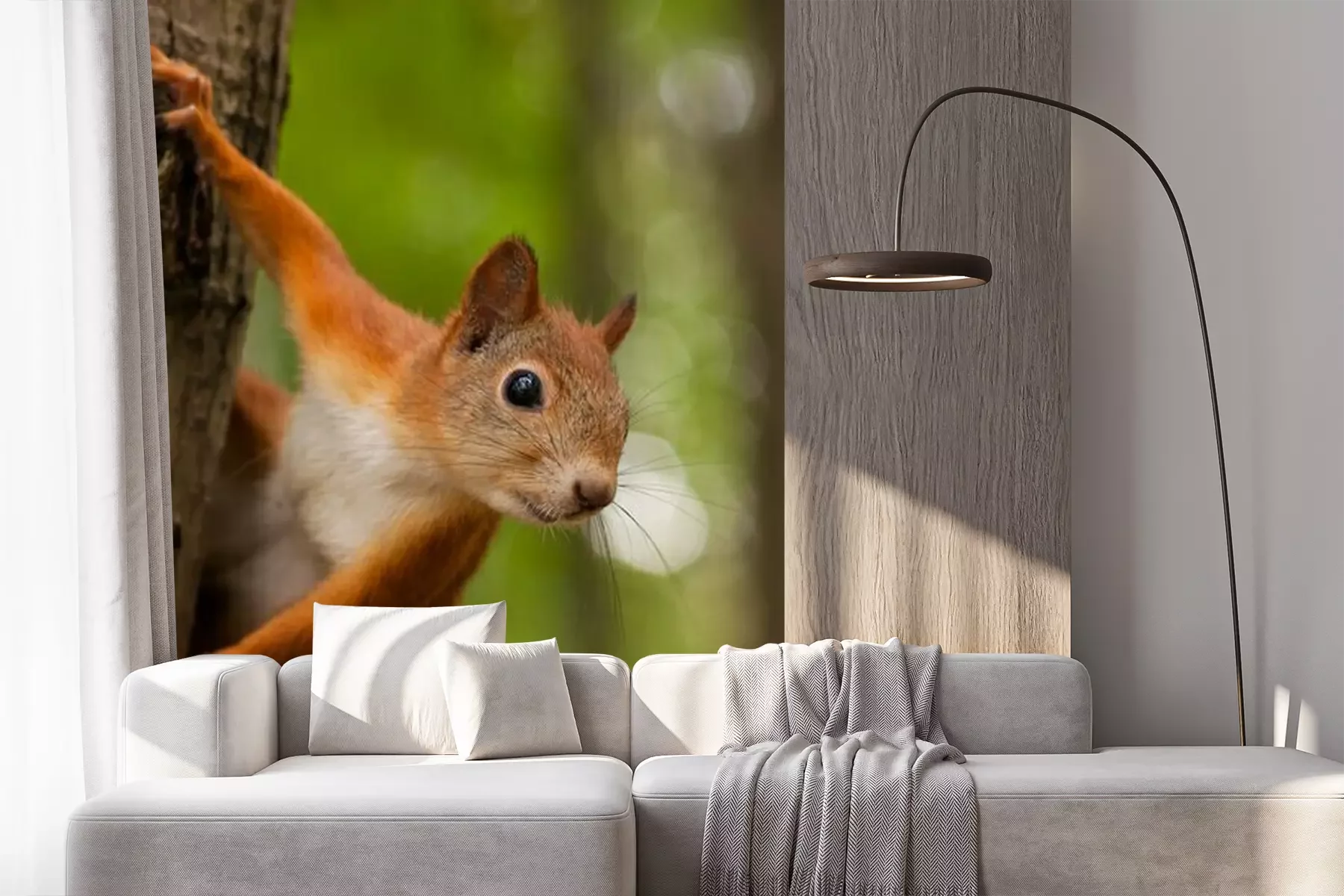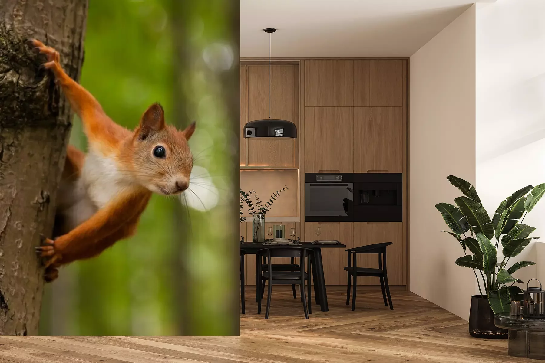 Fototapete Rotes Eichhörnchen auf Baum