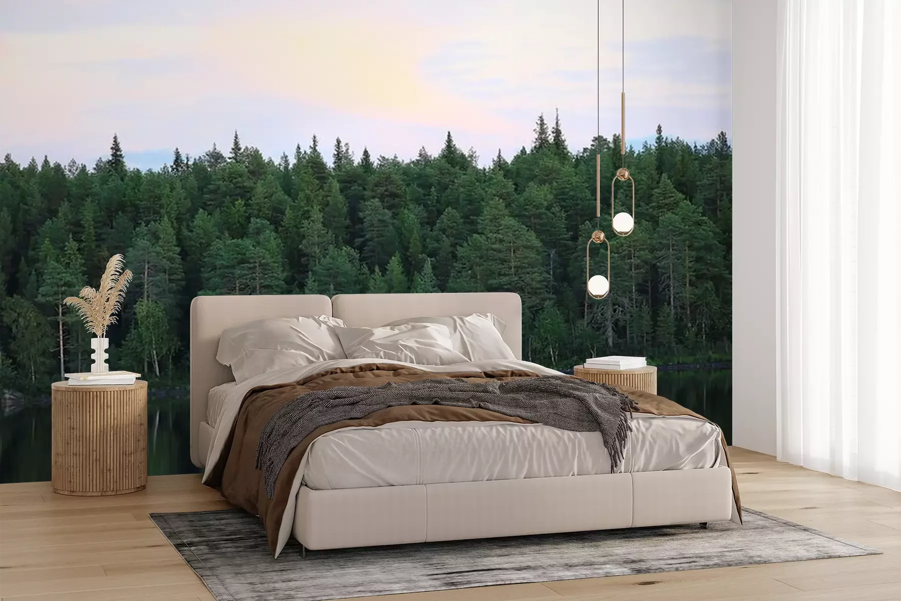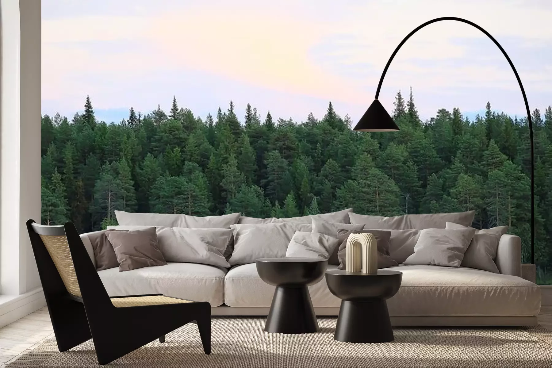 Fototapete Ruhige Landschaft des Nadelwaldes