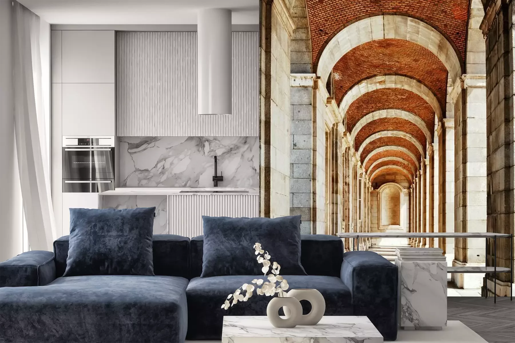Das Material Premium+ besteht aus einer strukturierten Vinyl-Oberschicht und einem Trägermaterial (Vlies) mit einer Grammatur von 255 g/m², das kleine Unebenheiten der Wand zuverlässig kaschiert. Die feine Sandstruktur verleiht der Oberfläche eine luxuriöse Haptik, während das halbmatte Finish die Tiefe der Farben betont. Das Material ist dampfdurchlässig – so kann diese Fototapete auch in Küchen und Badezimmern eingesetzt werden. Die maximale Breite einer Tapetenbahn beträgt 100 cm. Bei größeren Abmessungen besteht die Fototapete aus mehreren gleich großen Bahnen. Der Kleber wird direkt auf die Wand aufgetragen, und die Fototapete wird auf Stoß angebracht, was für einen ästhetischen Effekt ohne sichtbare Fugen sorgt. Die Oberfläche ist pflegeleicht und kann bei Bedarf sanft mit einem feuchten Tuch abgewischt werden.