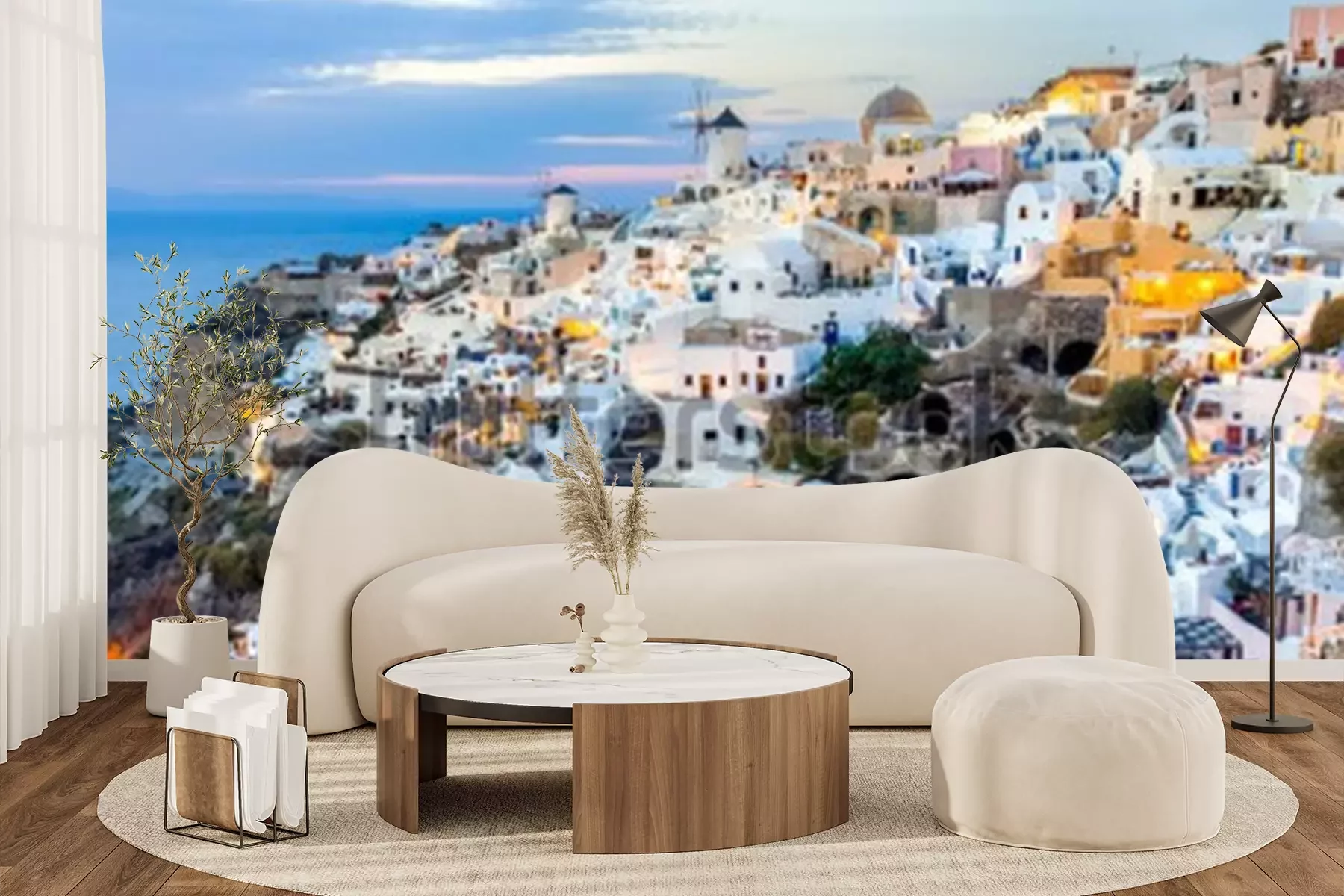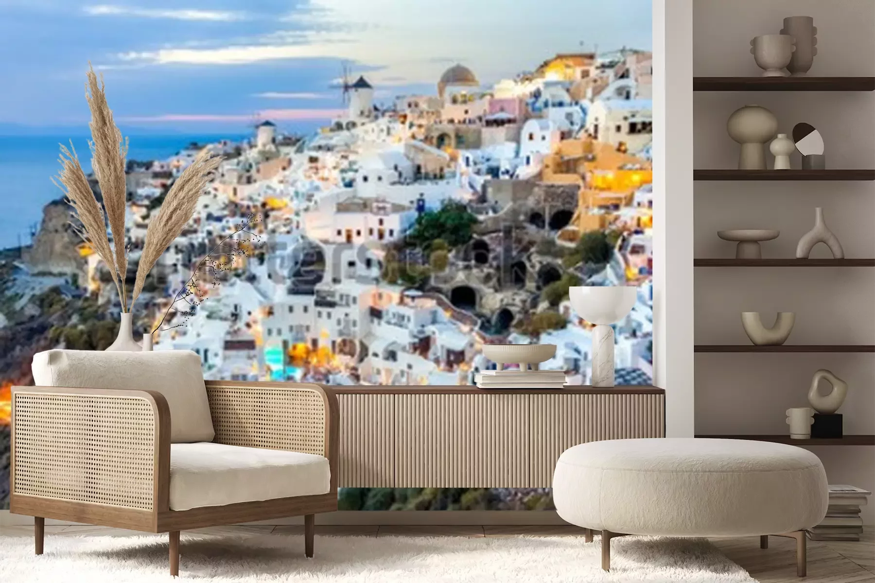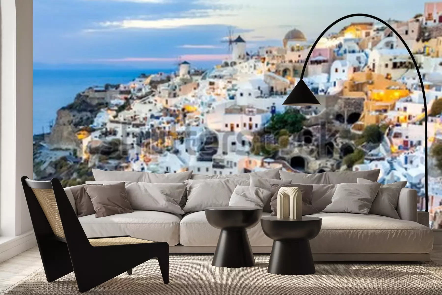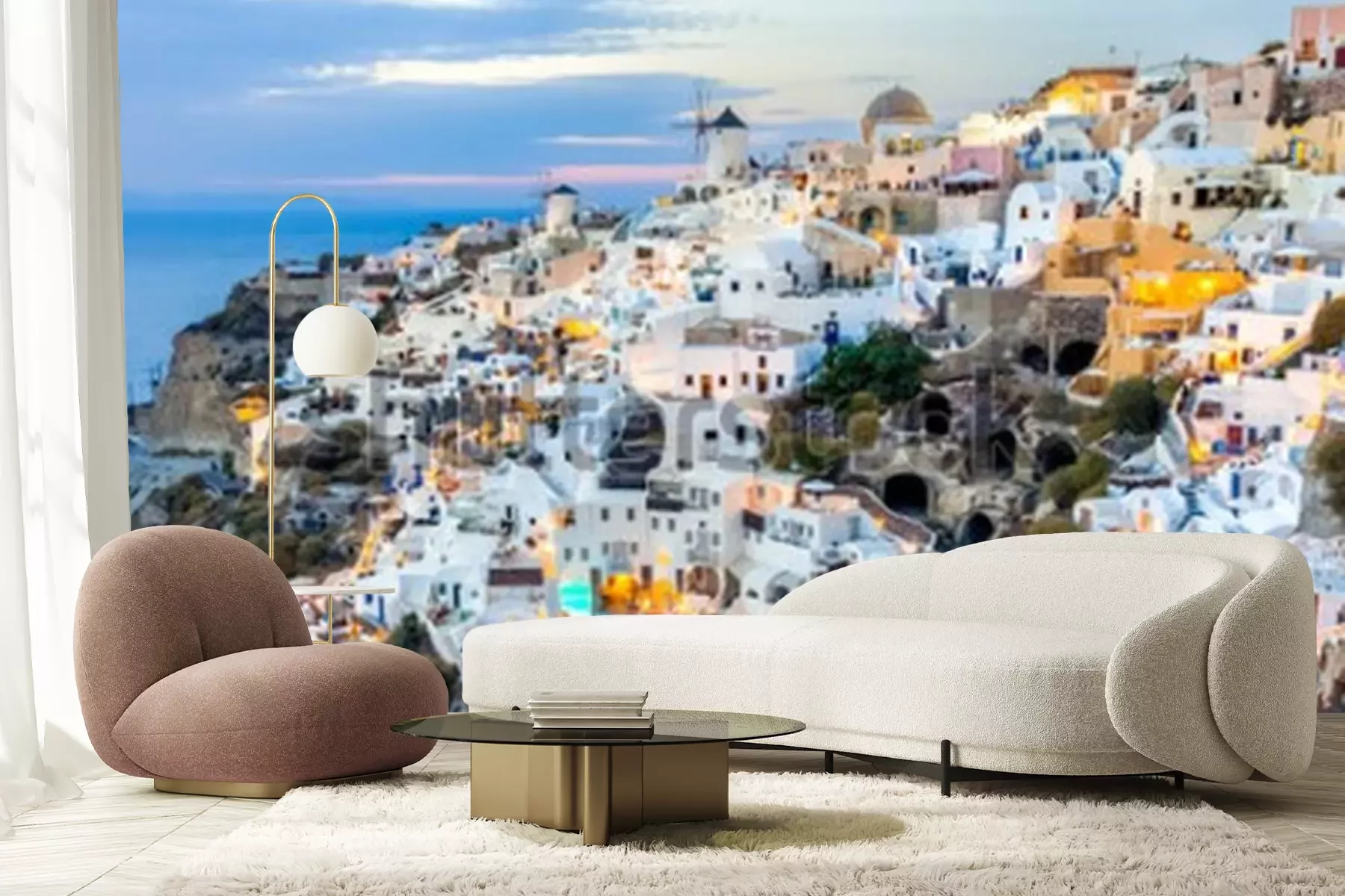 Fototapete Santorini-Insel bei Sonnenuntergang, Standpunkt von Oia-Dorf, Santorini, Griechenland