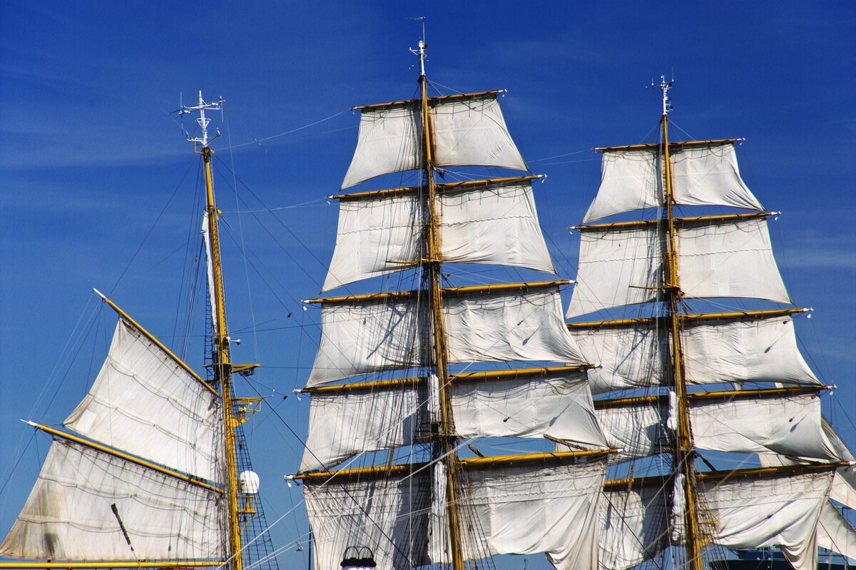 Fototapete: Schiff auf See segelt neben einem Leuchtturm