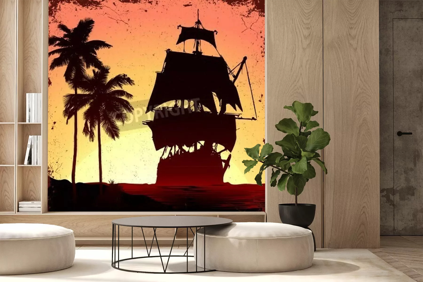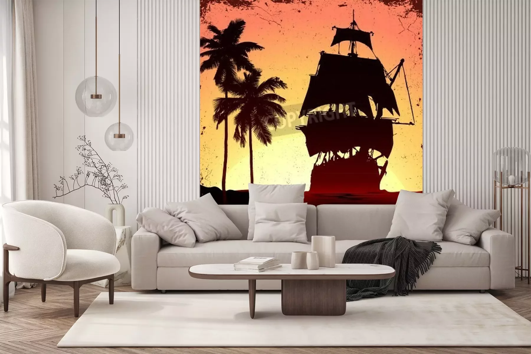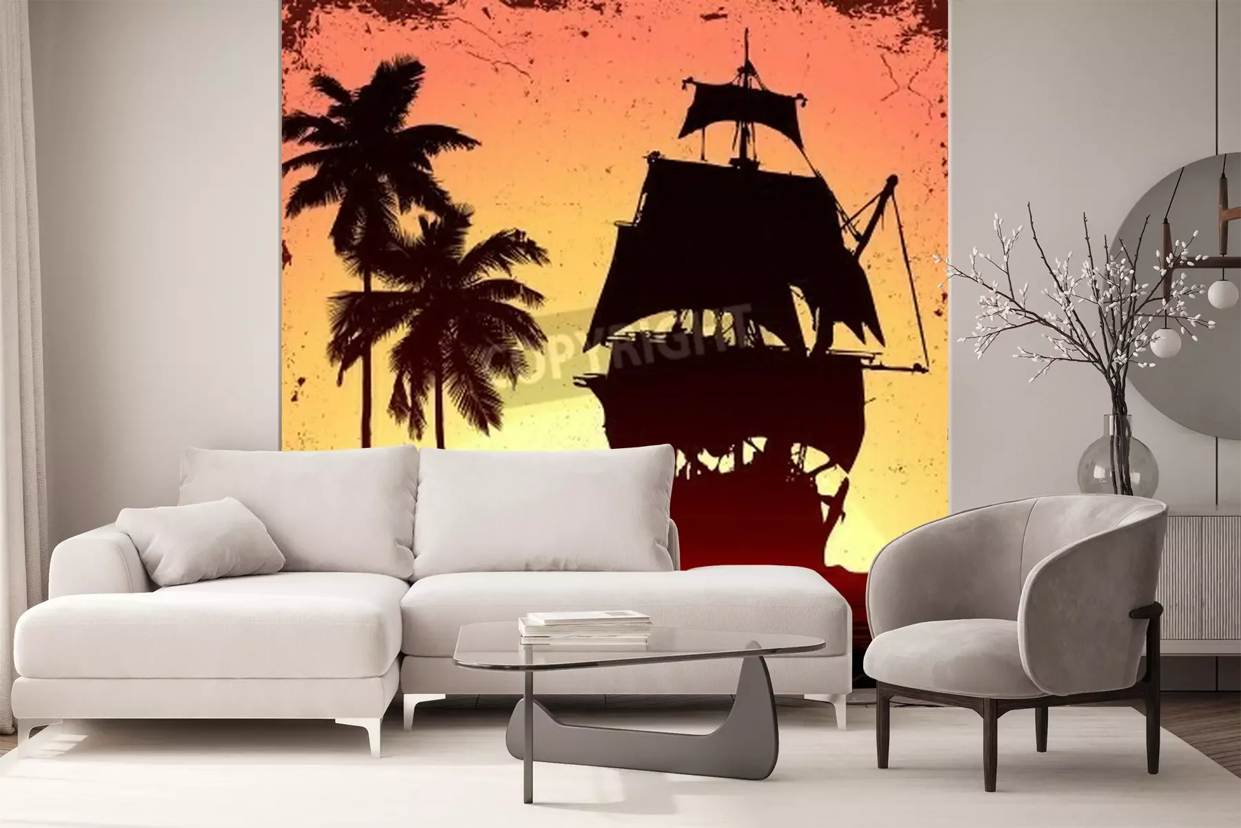 Fototapete Schiff und tropische Palmen