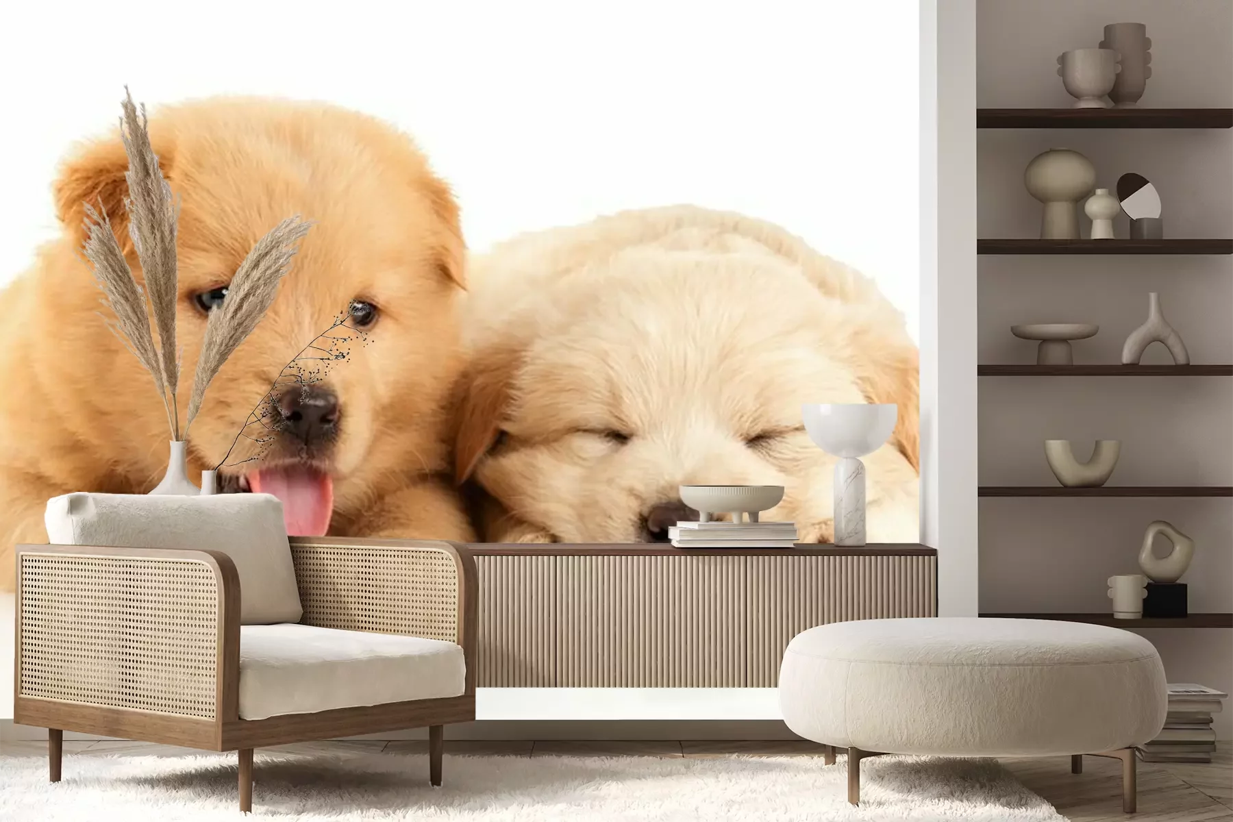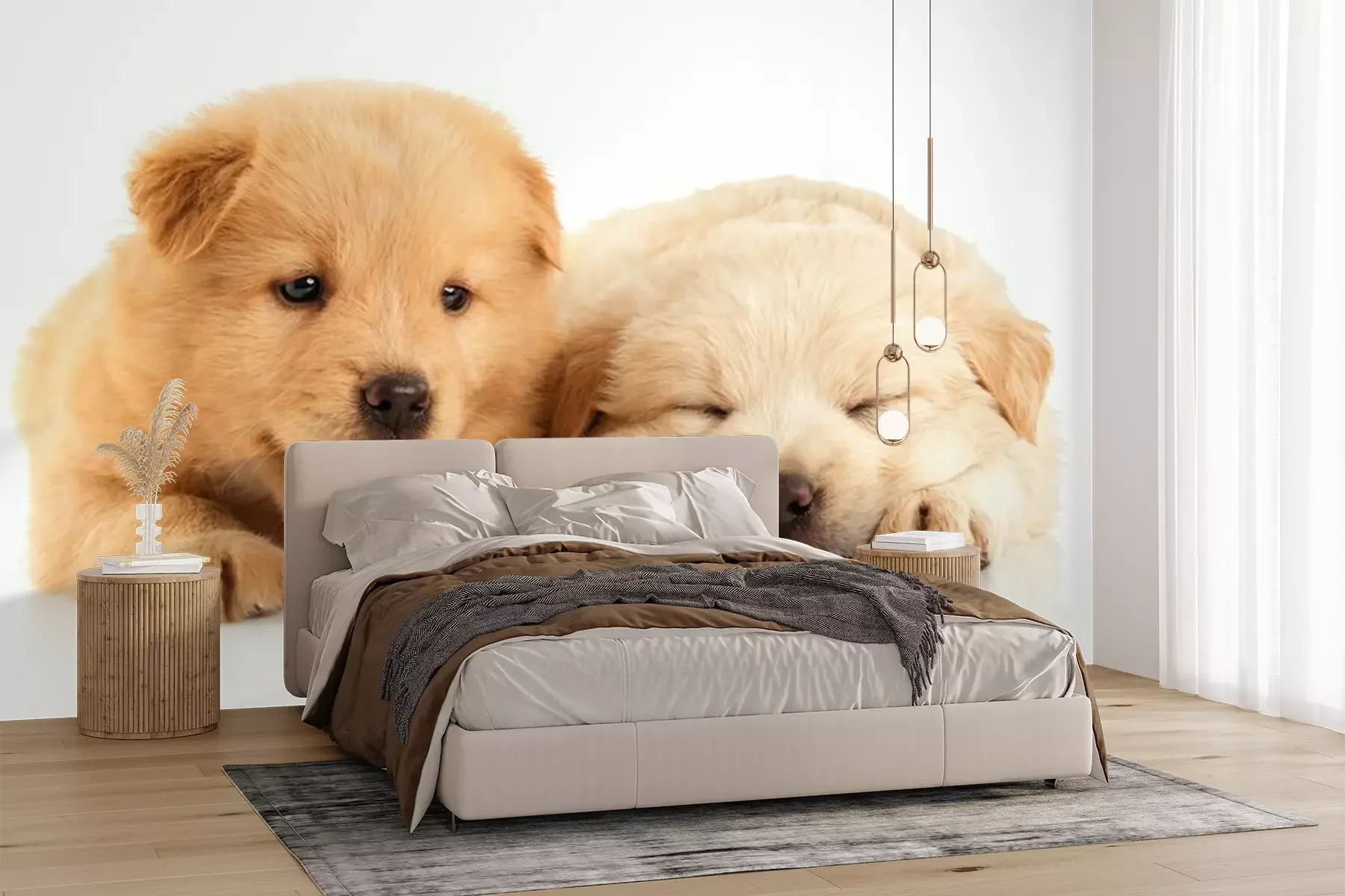Schlafende sandfarbene WelpenProblemlose Lieferung durch vertrauenswürdige Spediteure