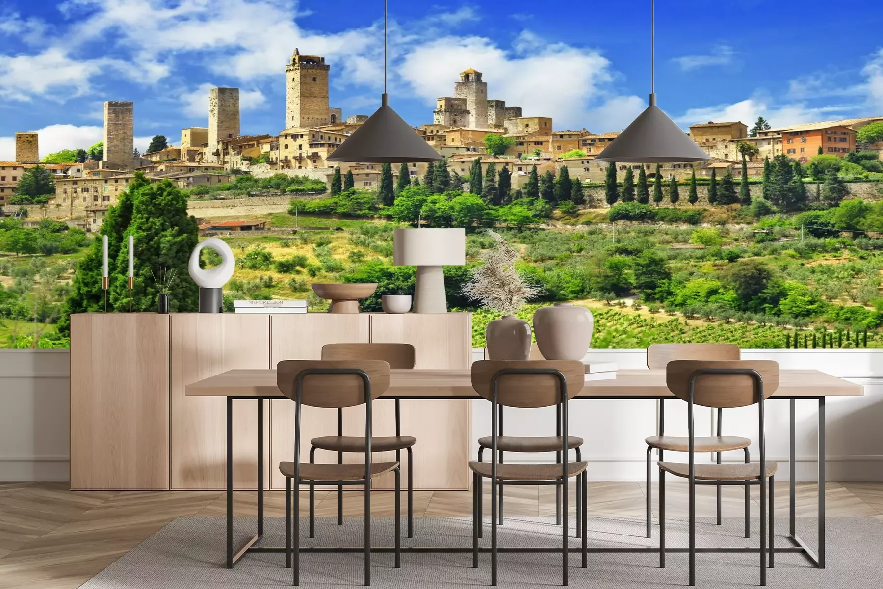 Das Material Premium+ besteht aus einer strukturierten Vinyl-Oberschicht und einem Trägermaterial (Vlies) mit einer Grammatur von 255 g/m², das kleine Unebenheiten der Wand zuverlässig kaschiert. Die feine Sandstruktur verleiht der Oberfläche eine luxuriöse Haptik, während das halbmatte Finish die Tiefe der Farben betont. Das Material ist dampfdurchlässig – so kann diese Fototapete auch in Küchen und Badezimmern eingesetzt werden. Die maximale Breite einer Tapetenbahn beträgt 100 cm. Bei größeren Abmessungen besteht die Fototapete aus mehreren gleich großen Bahnen. Der Kleber wird direkt auf die Wand aufgetragen, und die Fototapete wird auf Stoß angebracht, was für einen ästhetischen Effekt ohne sichtbare Fugen sorgt. Die Oberfläche ist pflegeleicht und kann bei Bedarf sanft mit einem feuchten Tuch abgewischt werden.