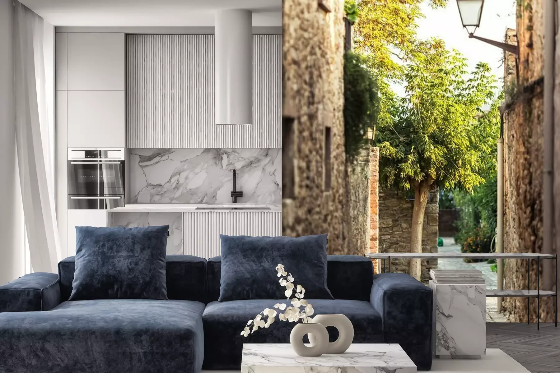 Das Material Premium+ besteht aus einer strukturierten Vinyl-Oberschicht und einem Trägermaterial (Vlies) mit einer Grammatur von 255 g/m², das kleine Unebenheiten der Wand zuverlässig kaschiert. Die feine Sandstruktur verleiht der Oberfläche eine luxuriöse Haptik, während das halbmatte Finish die Tiefe der Farben betont. Das Material ist dampfdurchlässig – so kann diese Fototapete auch in Küchen und Badezimmern eingesetzt werden. Die maximale Breite einer Tapetenbahn beträgt 100 cm. Bei größeren Abmessungen besteht die Fototapete aus mehreren gleich großen Bahnen. Der Kleber wird direkt auf die Wand aufgetragen, und die Fototapete wird auf Stoß angebracht, was für einen ästhetischen Effekt ohne sichtbare Fugen sorgt. Die Oberfläche ist pflegeleicht und kann bei Bedarf sanft mit einem feuchten Tuch abgewischt werden.