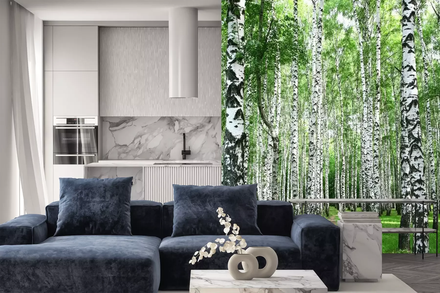Birken auf der WieseFototapete