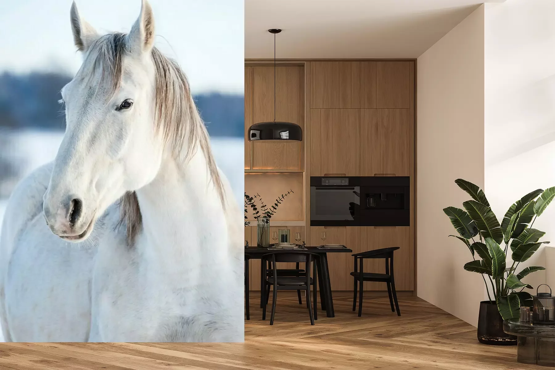 Das Material Premium+ besteht aus einer strukturierten Vinyl-Oberschicht und einem Trägermaterial (Vlies) mit einer Grammatur von 255 g/m², das kleine Unebenheiten der Wand zuverlässig kaschiert. Die feine Sandstruktur verleiht der Oberfläche eine luxuriöse Haptik, während das halbmatte Finish die Tiefe der Farben betont. Das Material ist dampfdurchlässig – so kann diese Fototapete auch in Küchen und Badezimmern eingesetzt werden. Die maximale Breite einer Tapetenbahn beträgt 100 cm. Bei größeren Abmessungen besteht die Fototapete aus mehreren gleich großen Bahnen. Der Kleber wird direkt auf die Wand aufgetragen, und die Fototapete wird auf Stoß angebracht, was für einen ästhetischen Effekt ohne sichtbare Fugen sorgt. Die Oberfläche ist pflegeleicht und kann bei Bedarf sanft mit einem feuchten Tuch abgewischt werden.