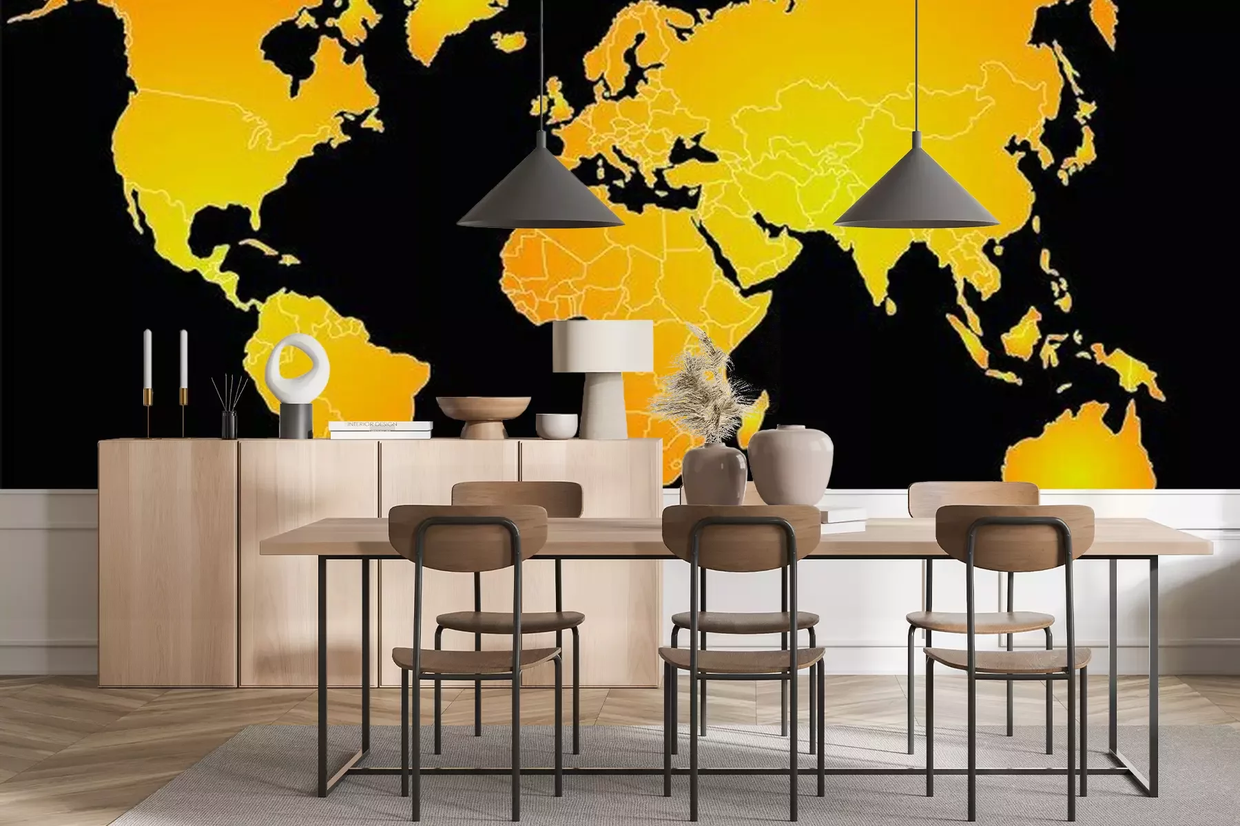 Fototapete Schwarz-orange Weltkarte
