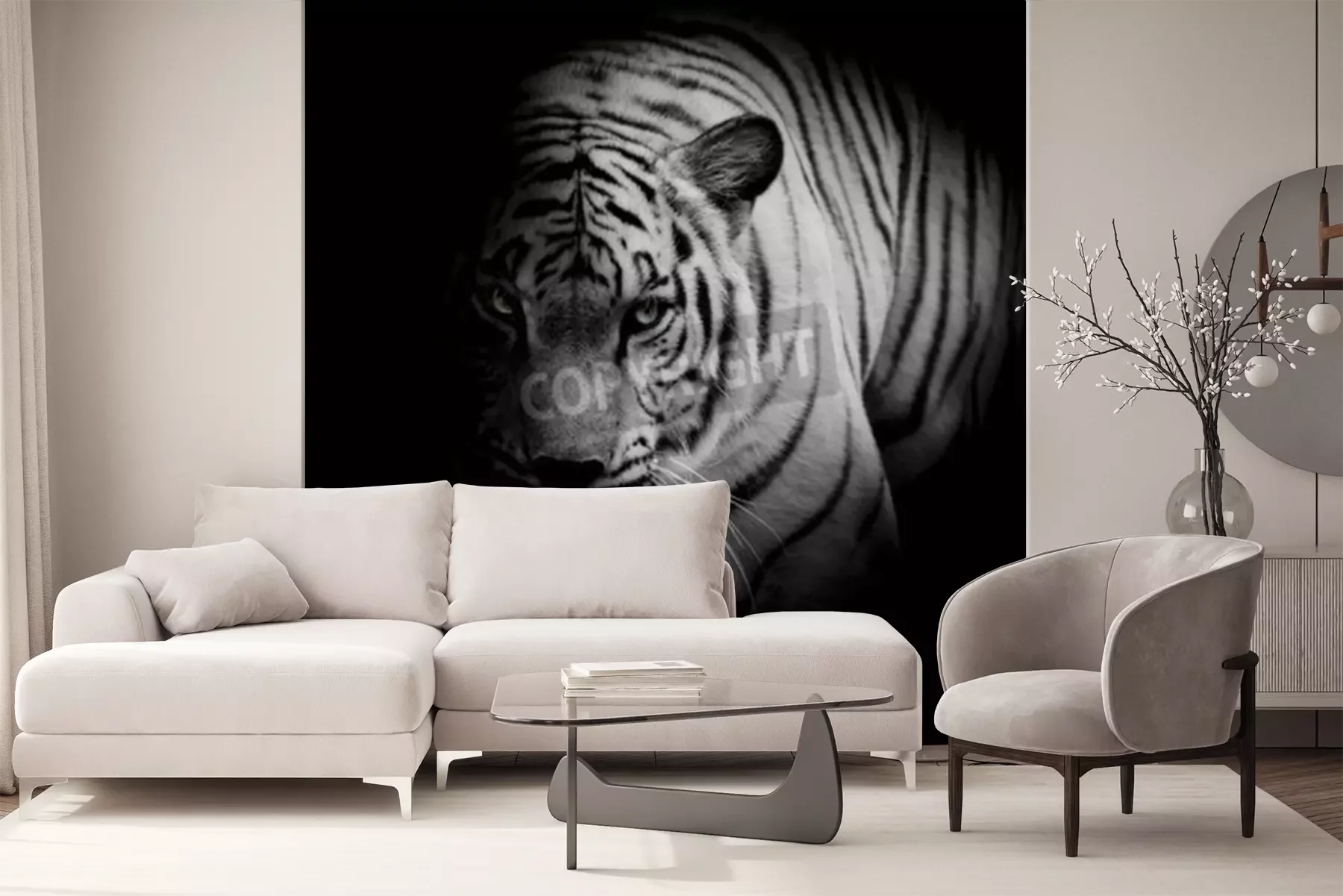 Fototapete Schwarz-weiß-darstellung eines tigers