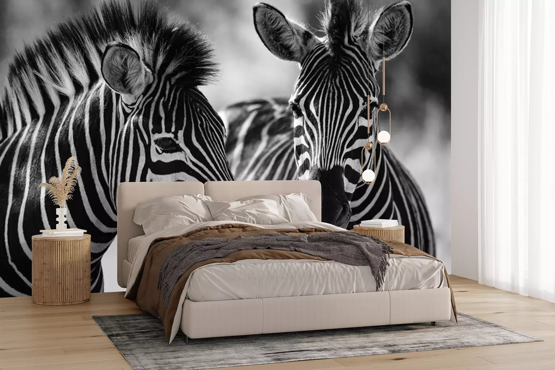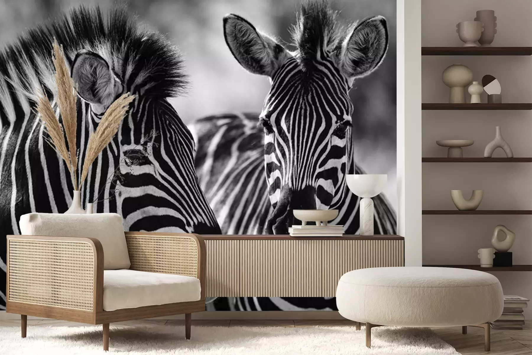 Fototapete Schwarz-Weiß-Foto mit Tieren