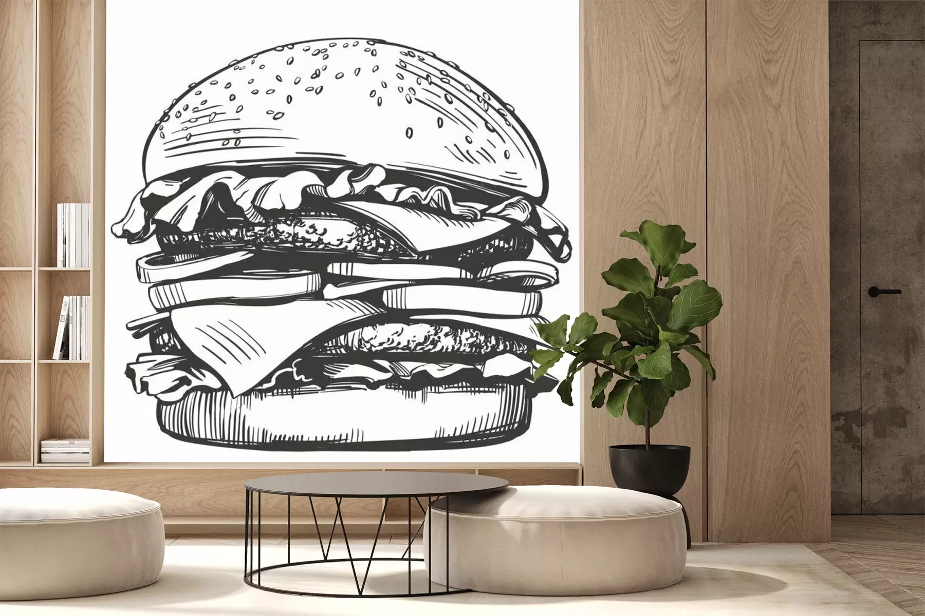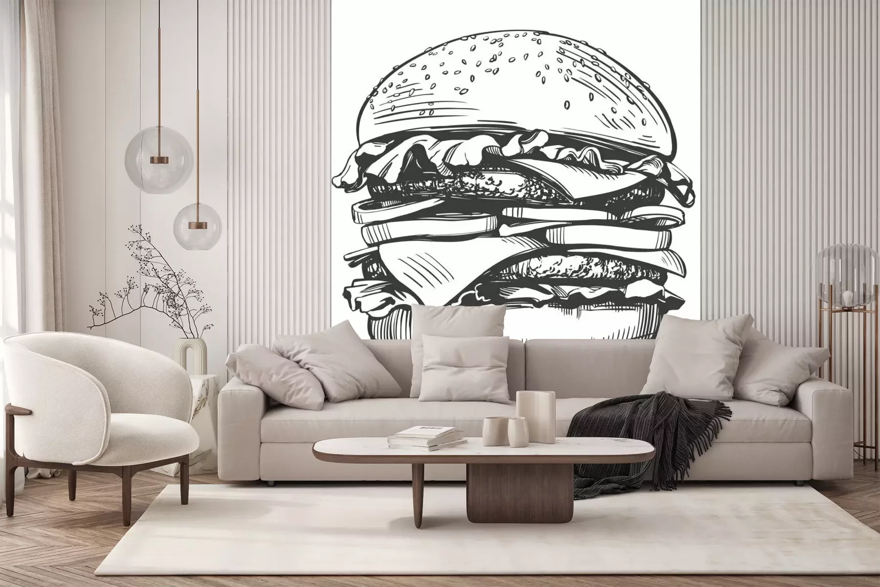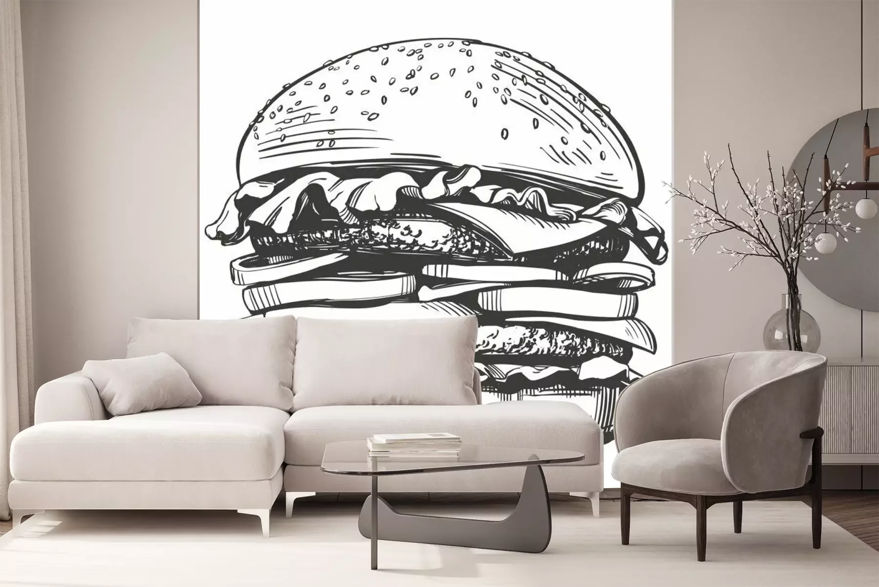 Fototapete Schwarz-Weiß Zeichnung Hamburger
