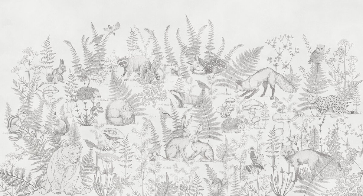Fototapete: Schwarz-weiß-Zeichnung mit Tieren
