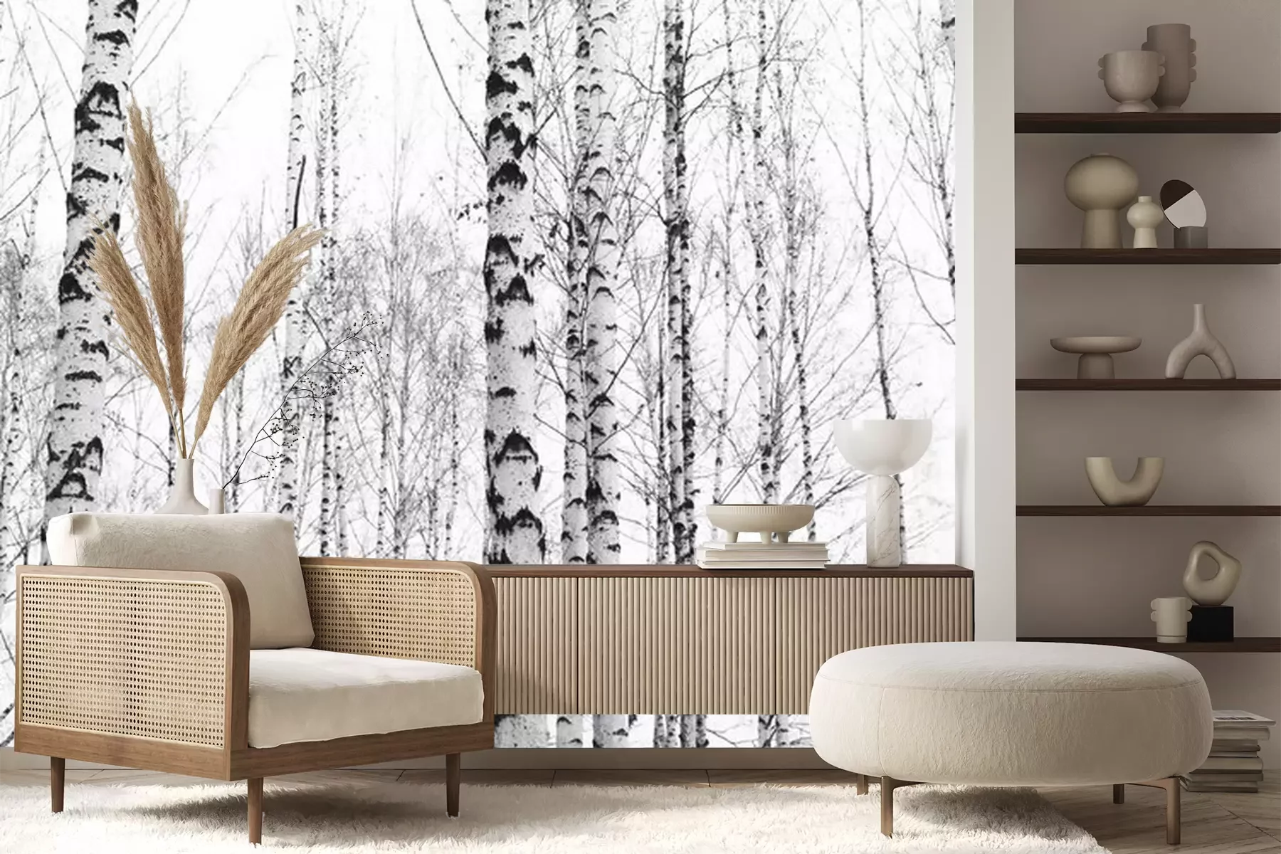 Foto schwarz-weißer BirkenProblemlose Lieferung durch vertrauenswürdige Spediteure