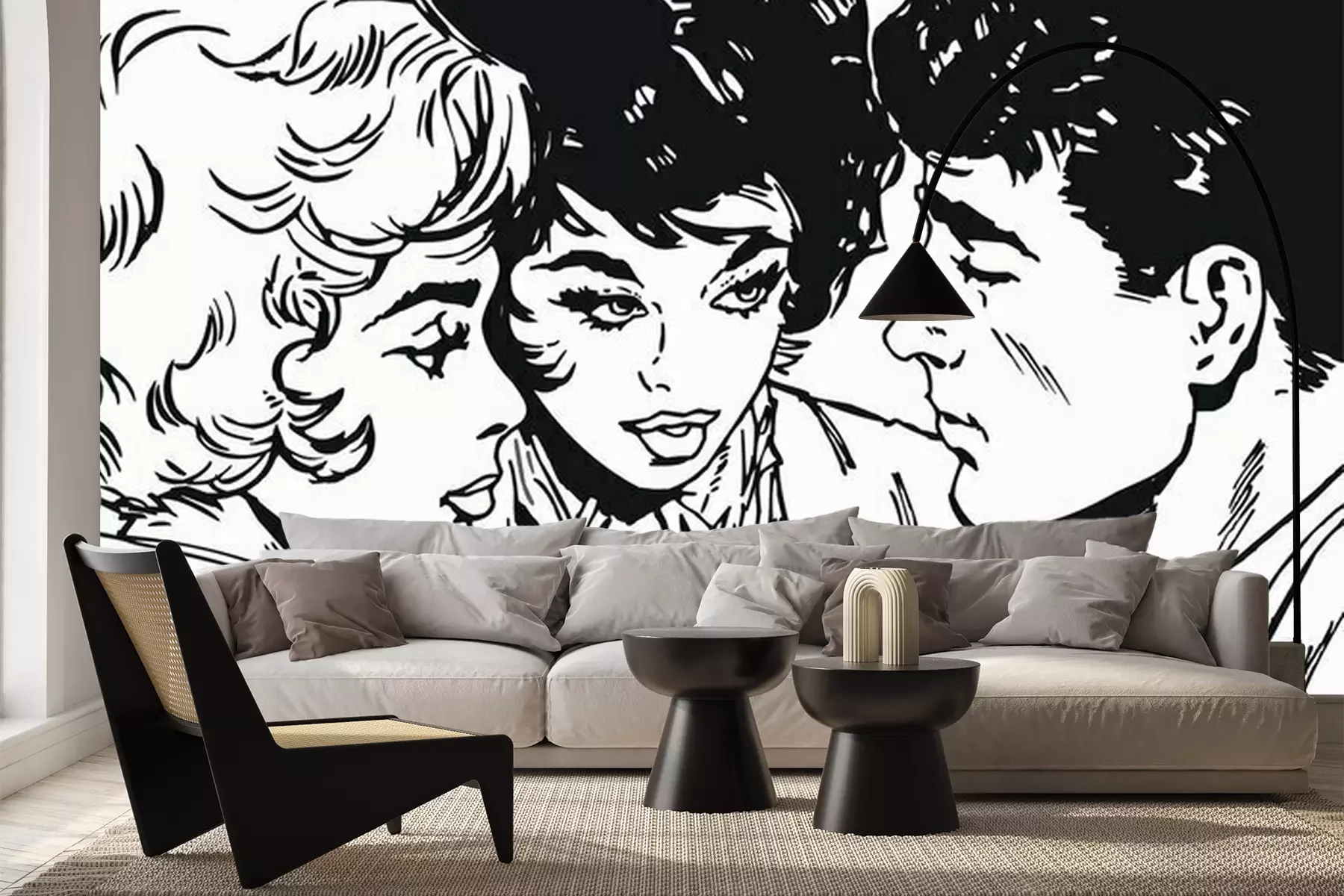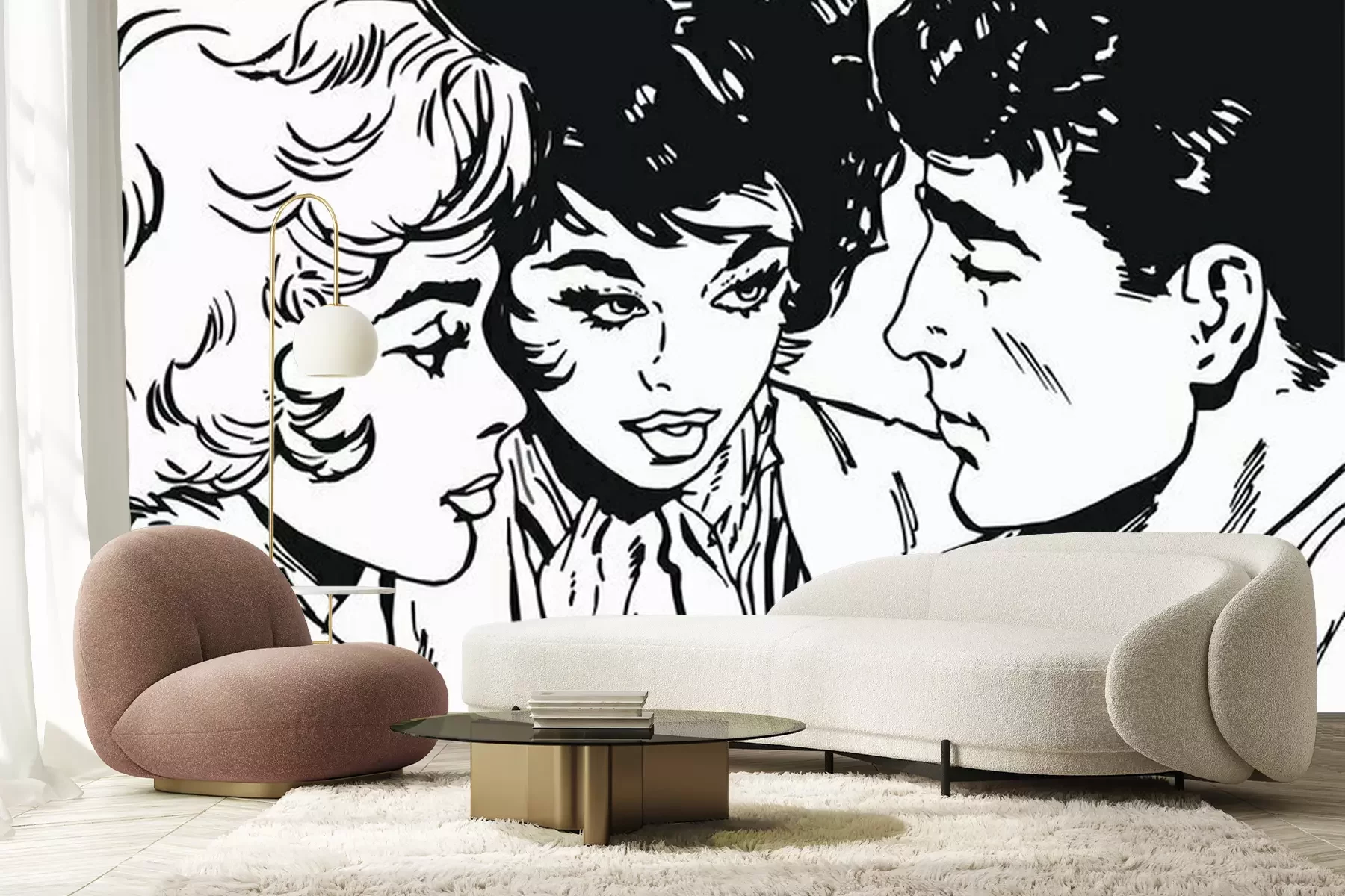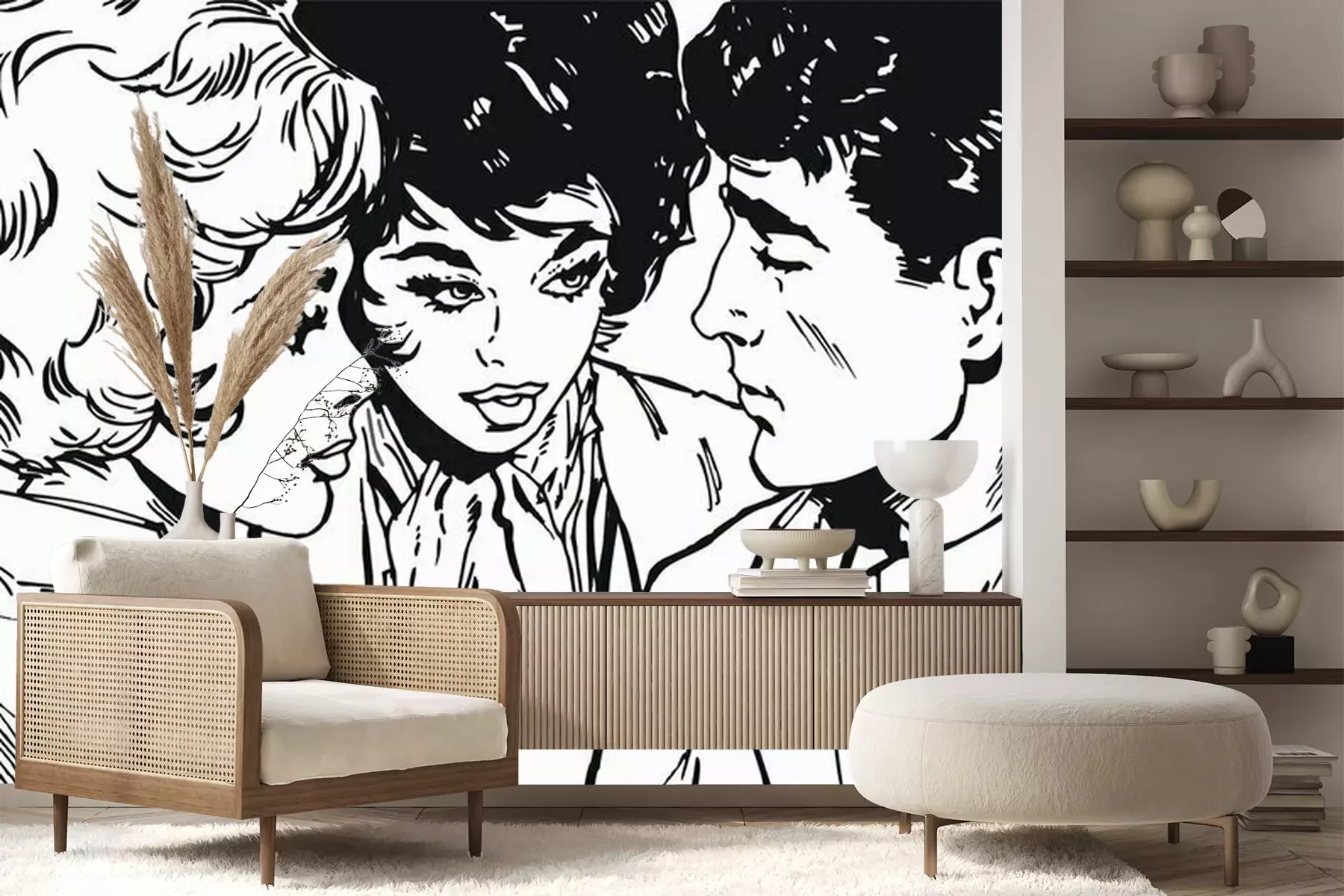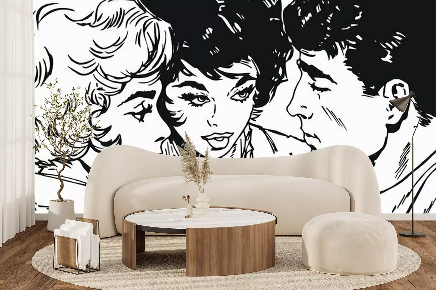 Fototapete Schwarz-weiße Illustration mit Menschen