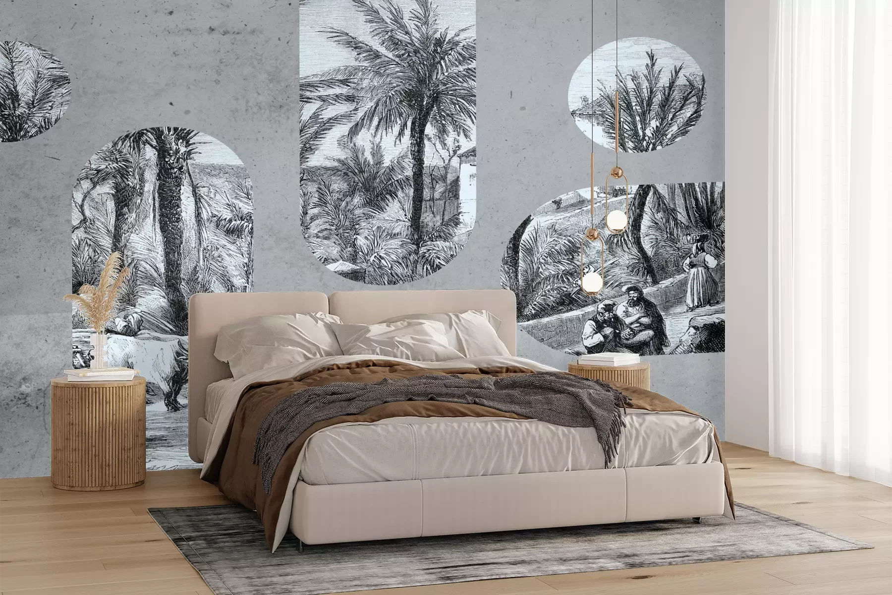 Die Fototapeten werden in Bahnen geliefert. Die Größe und die Anzahl der Bahnen, aus denen die gesamte Fototapete besteht, hängen vom gewählten Material ab. Wenn die Größe die maximale Breite des Materials überschreitet, besteht der Ausdruck aus mehreren gleich großen Bahnen.