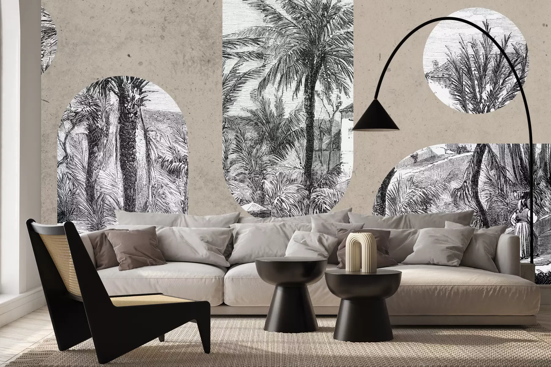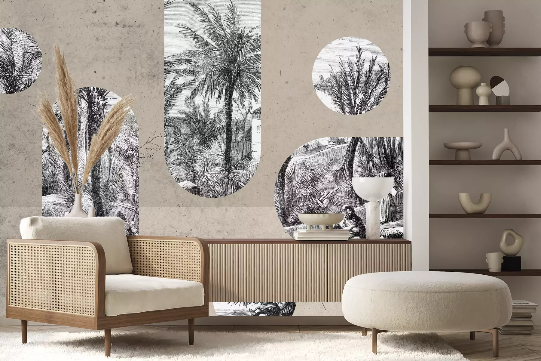 Das Material Premium+ besteht aus einer strukturierten Vinyl-Oberschicht und einem Trägermaterial (Vlies) mit einer Grammatur von 255 g/m², das kleine Unebenheiten der Wand zuverlässig kaschiert. Die feine Sandstruktur verleiht der Oberfläche eine luxuriöse Haptik, während das halbmatte Finish die Tiefe der Farben betont. Das Material ist dampfdurchlässig – so kann diese Fototapete auch in Küchen und Badezimmern eingesetzt werden. Die maximale Breite einer Tapetenbahn beträgt 100 cm. Bei größeren Abmessungen besteht die Fototapete aus mehreren gleich großen Bahnen. Der Kleber wird direkt auf die Wand aufgetragen, und die Fototapete wird auf Stoß angebracht, was für einen ästhetischen Effekt ohne sichtbare Fugen sorgt. Die Oberfläche ist pflegeleicht und kann bei Bedarf sanft mit einem feuchten Tuch abgewischt werden.