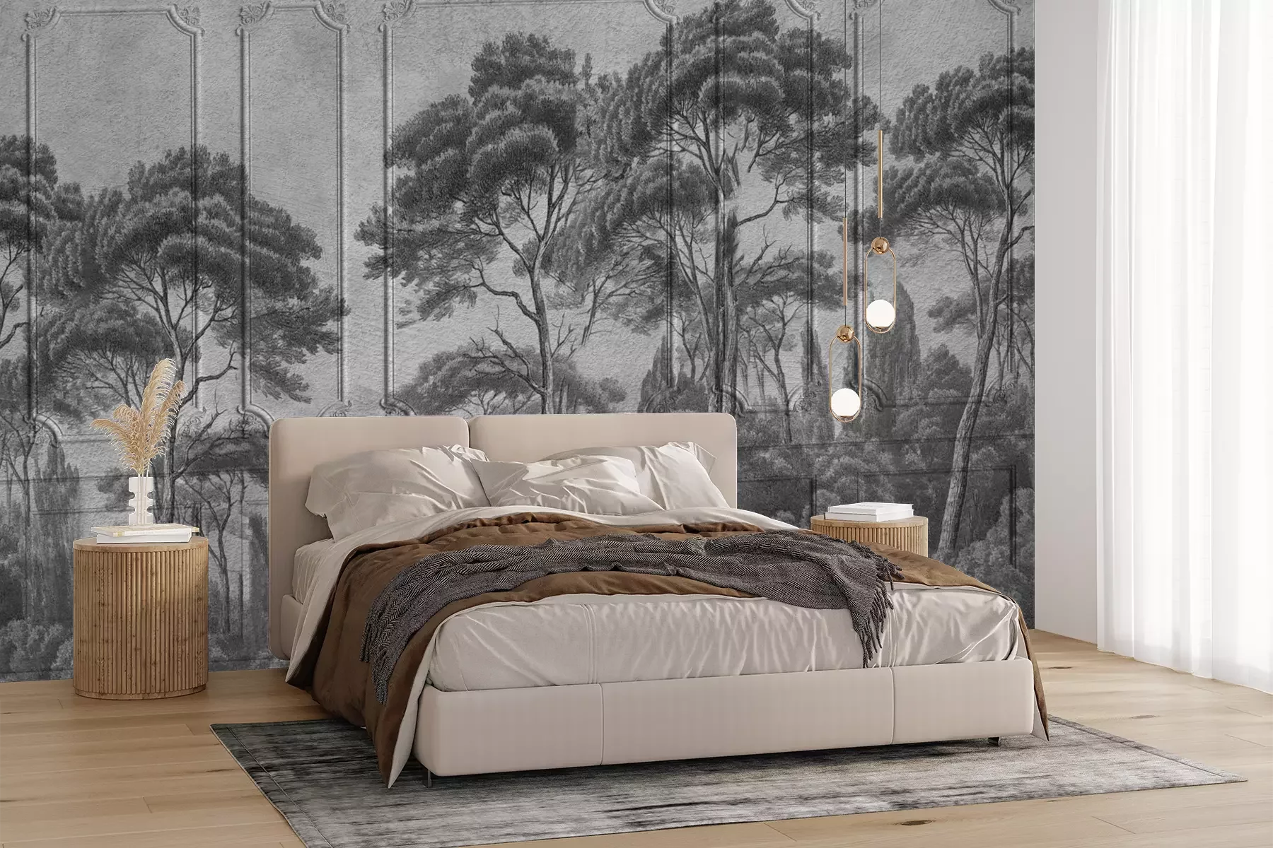 Die Fototapeten werden in Bahnen geliefert. Die Größe und die Anzahl der Bahnen, aus denen die gesamte Fototapete besteht, hängen vom gewählten Material ab. Wenn die Größe die maximale Breite des Materials überschreitet, besteht der Ausdruck aus mehreren gleich großen Bahnen.