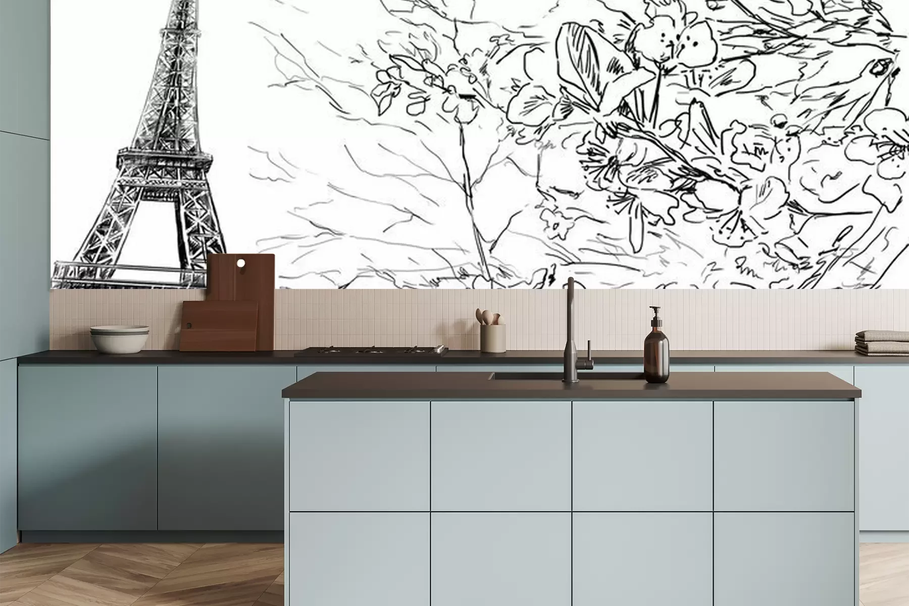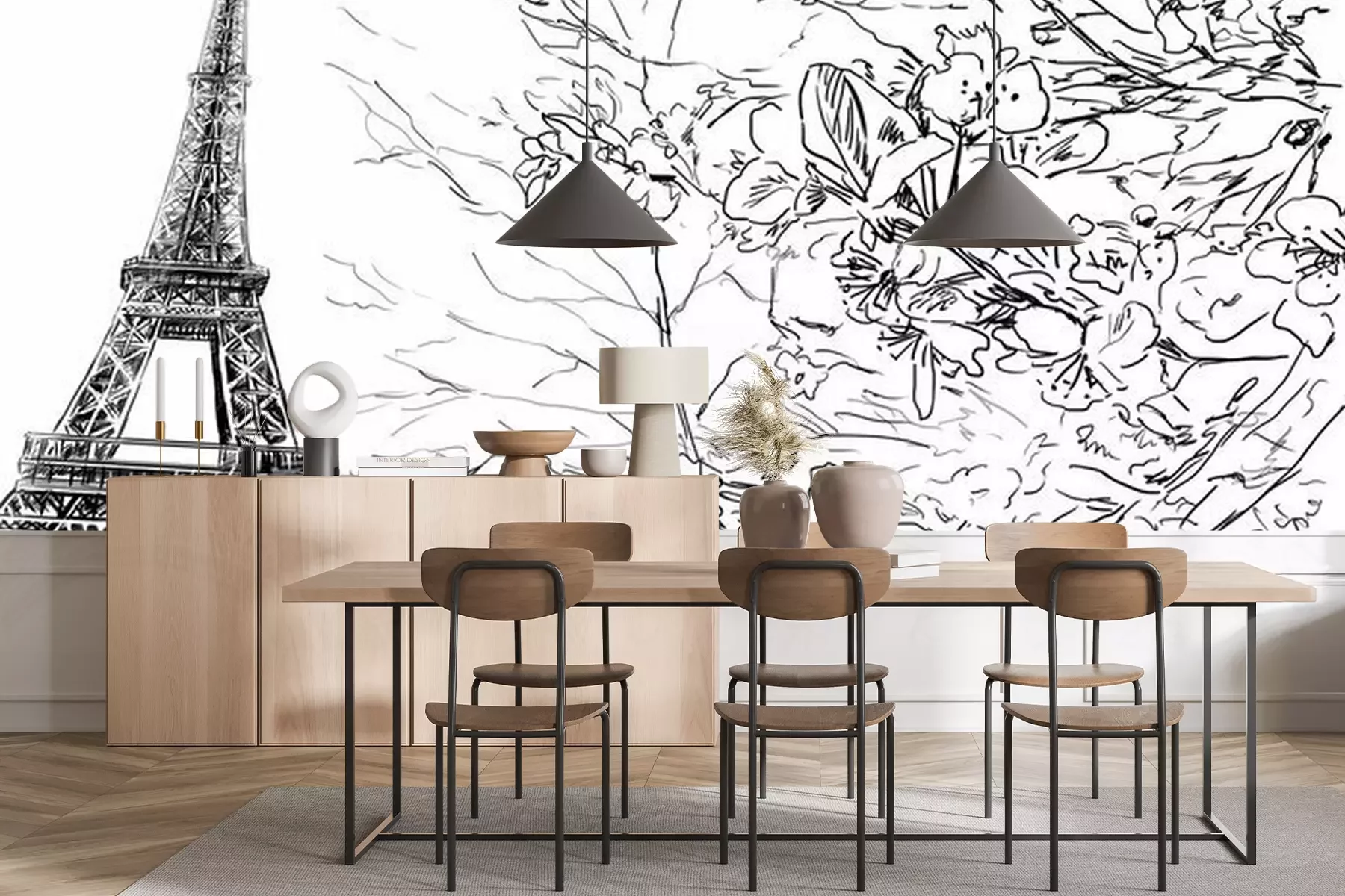 Fototapete Schwarz-weisser Blick auf Eiffelturm