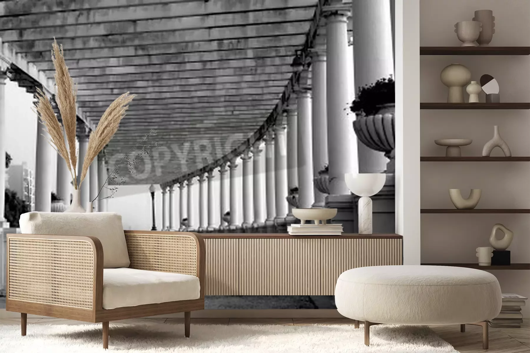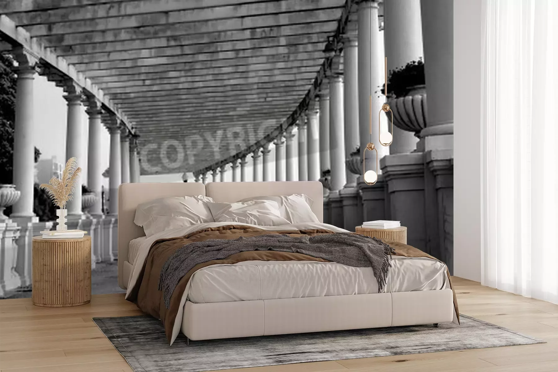 Fototapete Schwarz-weißer Blick auf Gebäude Porto
